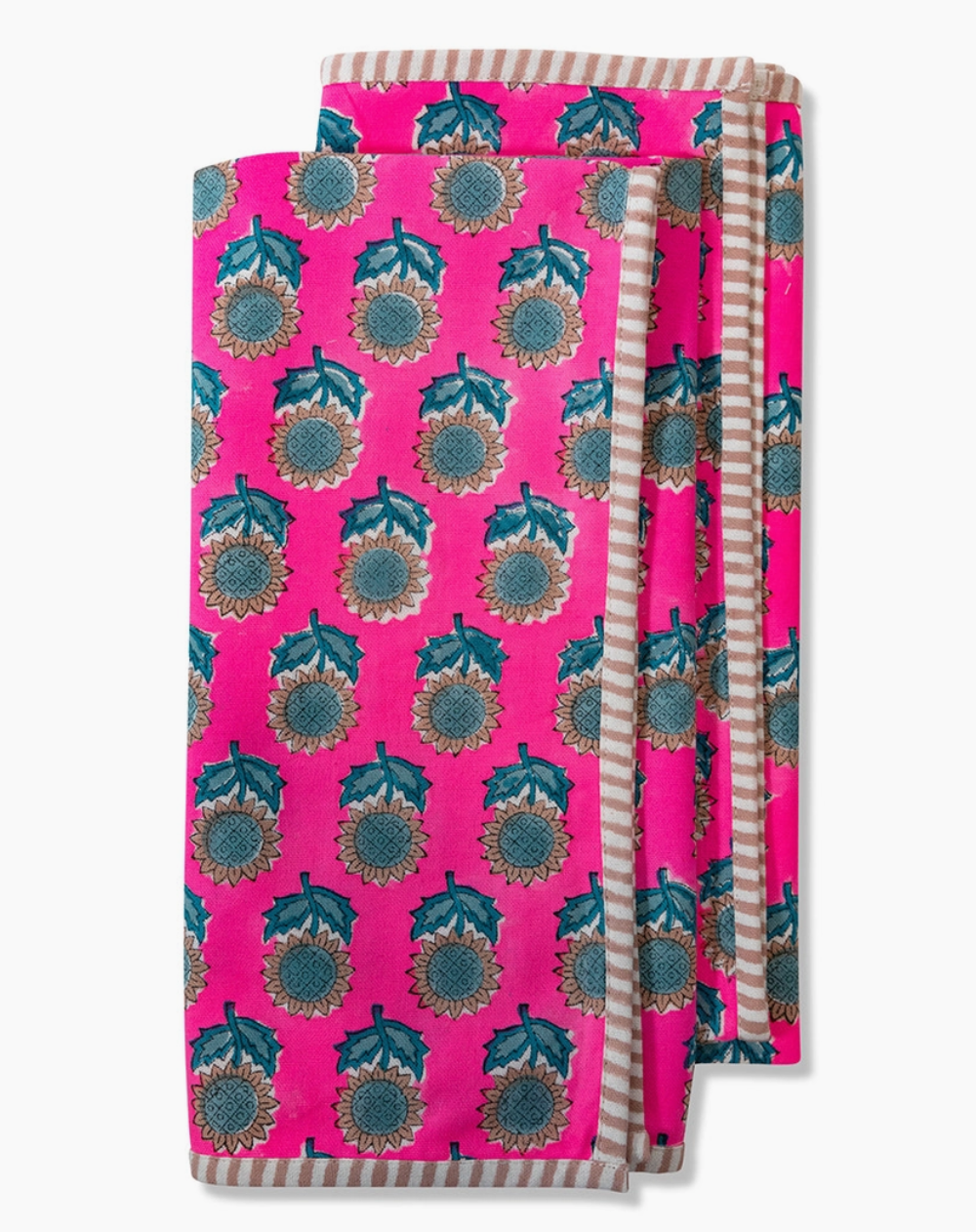 Chic and timeless, these pretty blockprint kitchen towels elevate the everyday and add a colorful charm to your kitchen or powder room.