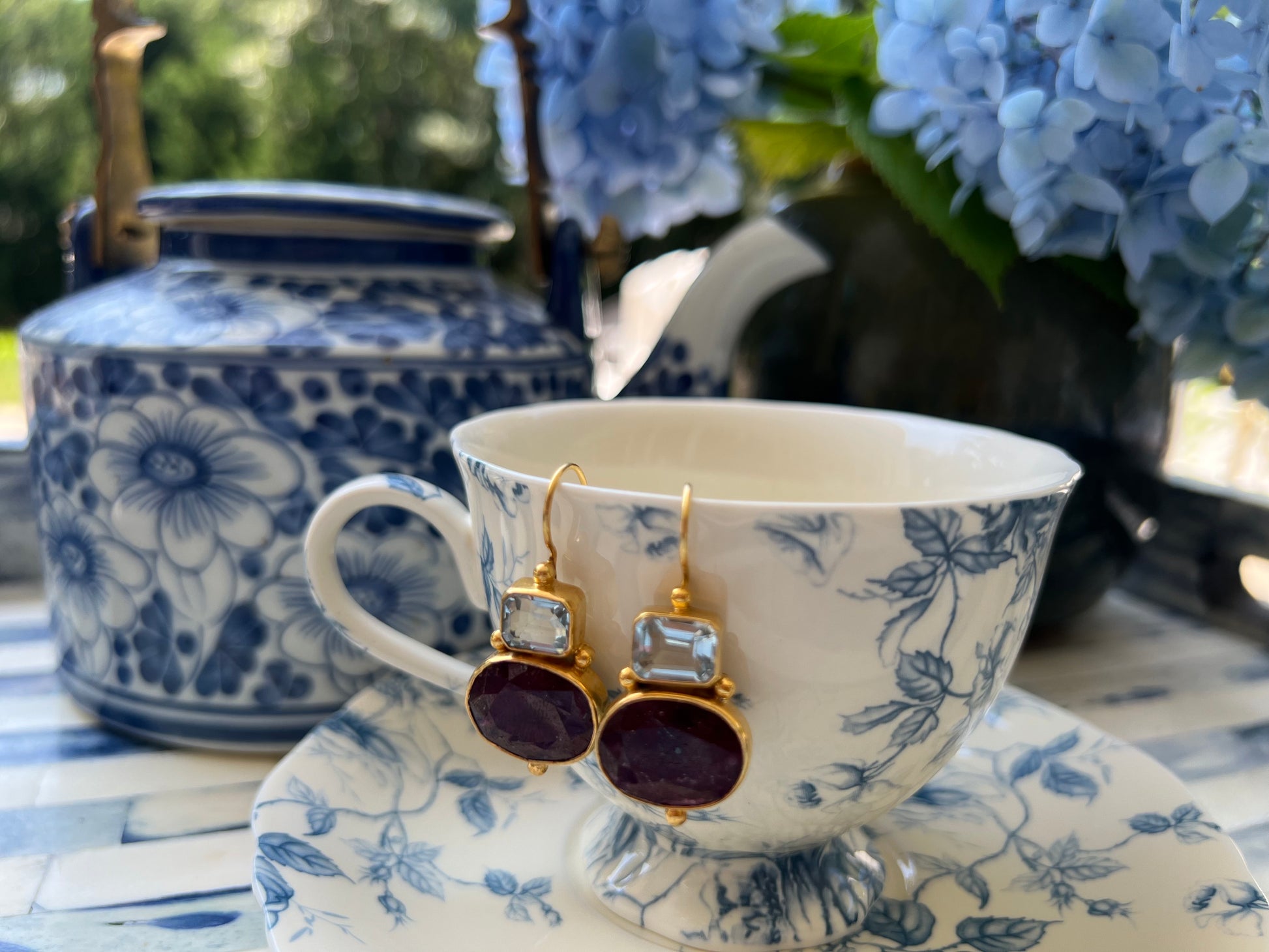 Aquamarine and Ruby Earrings