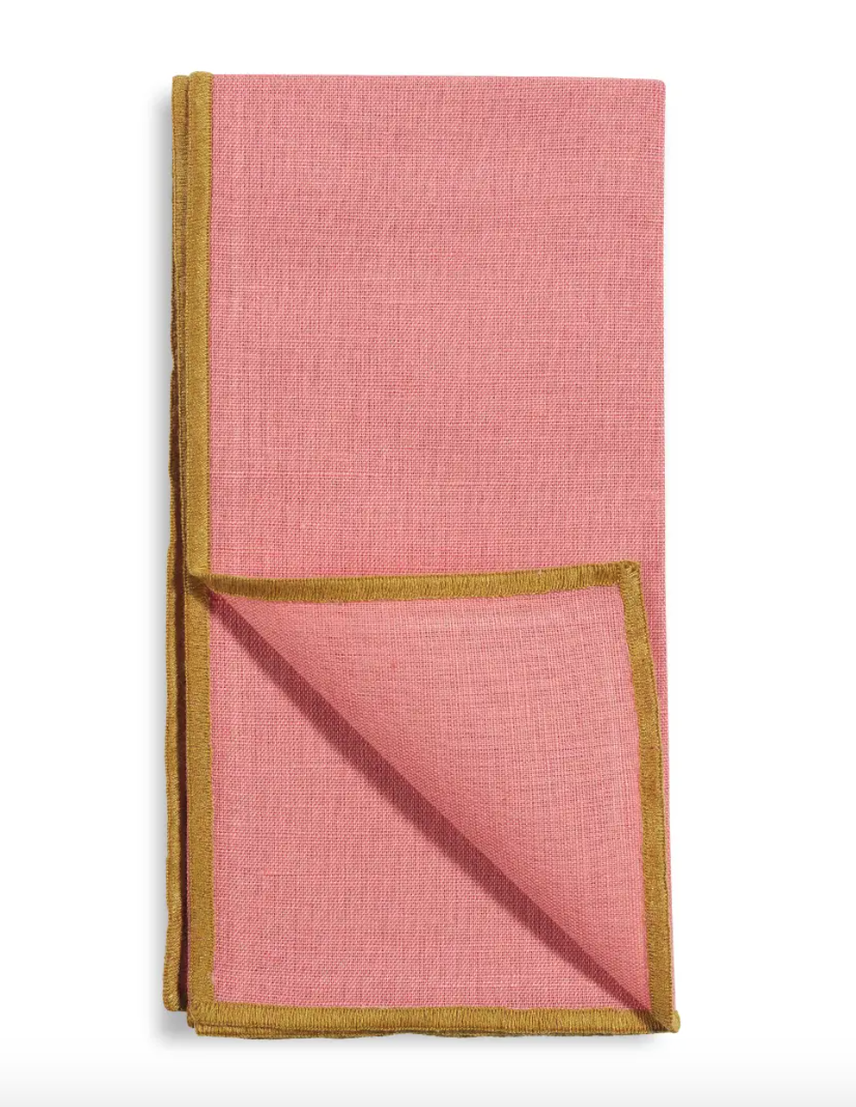 Introducing our delightful set of 4 linen and cotton napkins in the gorgeous pink color "Guava" with a chic "Moss Green" piping edge. Elevate your dining experience with these vibrant and stylish napkins, expertly crafted in India.