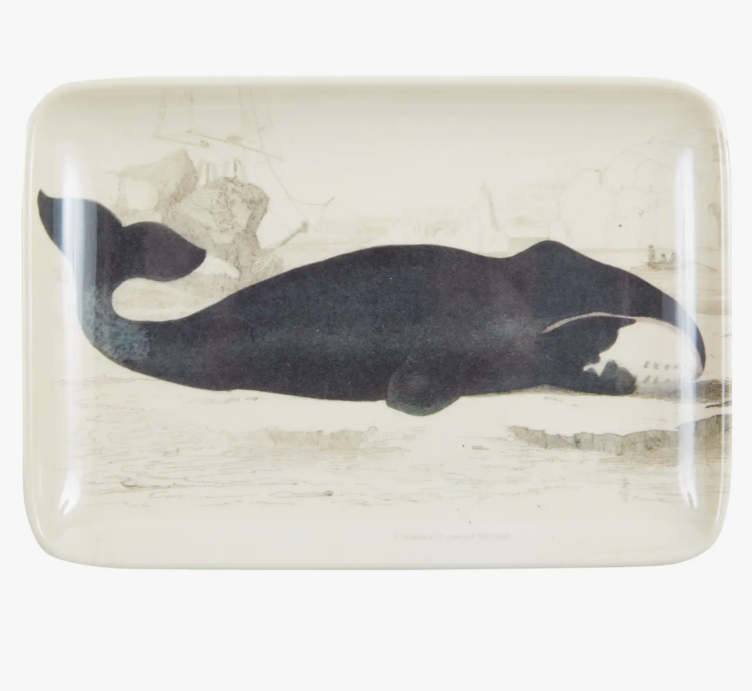 Our whale valet tray is inspired by vintage illustrations and is the perfect accent for your desk, dresser, or bath. We love them as a larger sized soap dish or catch all for jewelry.