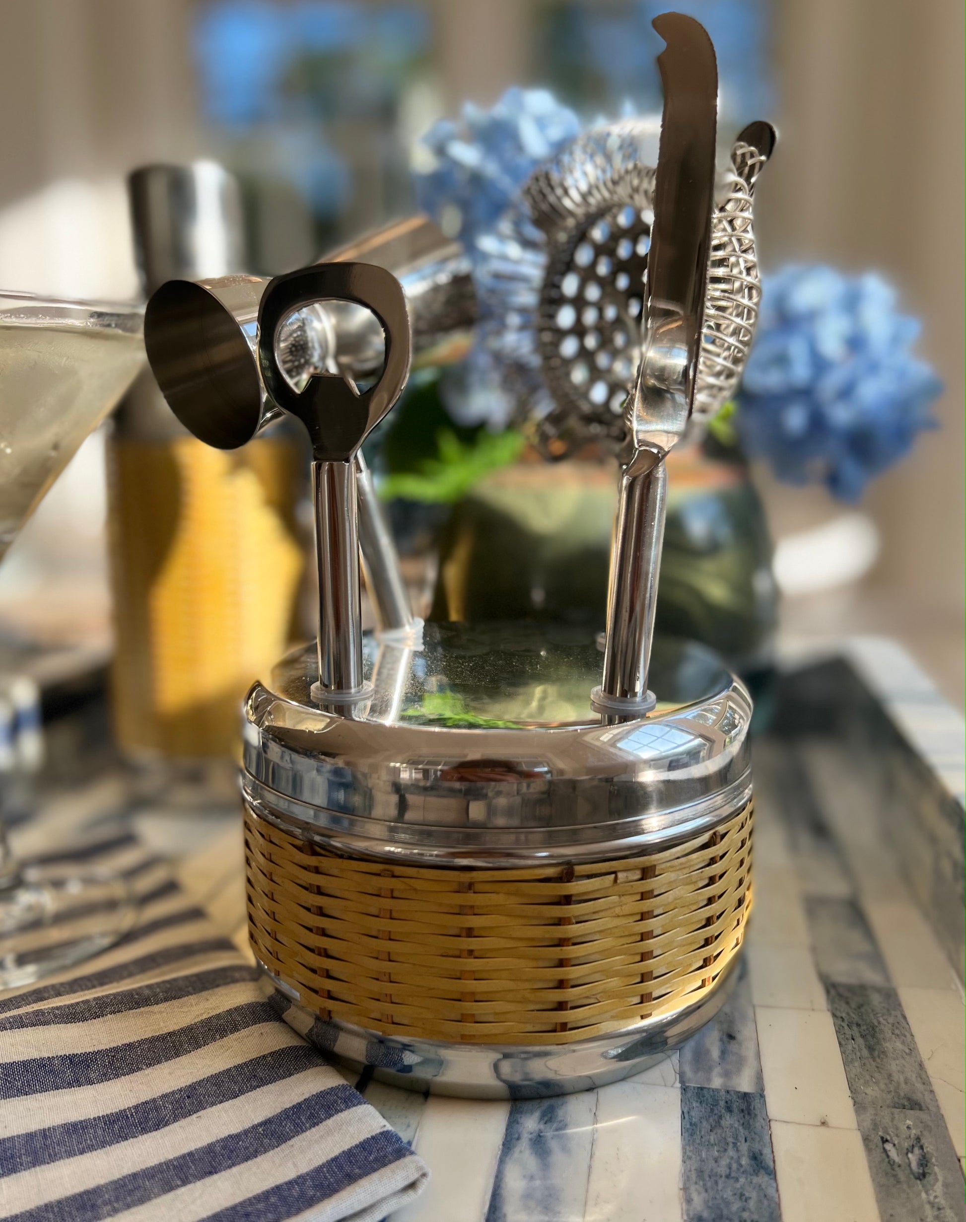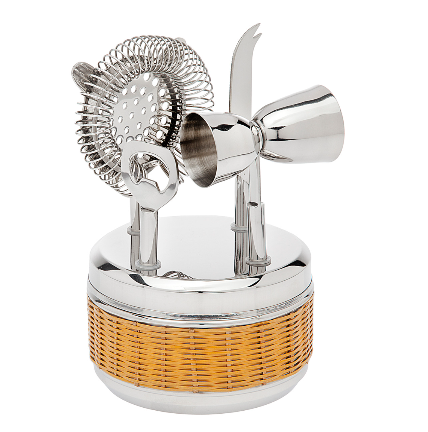 - Design details: Summer styled barware is made for beachside entertaining. Featuring polished stainless steel and faux rattan accents.