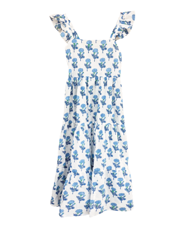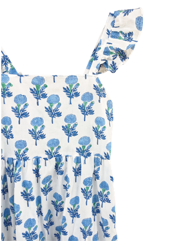 This beautiful blue, handmade, block printed, floral dress is a very elegant choice for the summer. Made from 100% cotton, it looks equally great whether going to the beach or strolling out for dinner, evening drinks and garden parties. We absolutely love its chic coastal look!