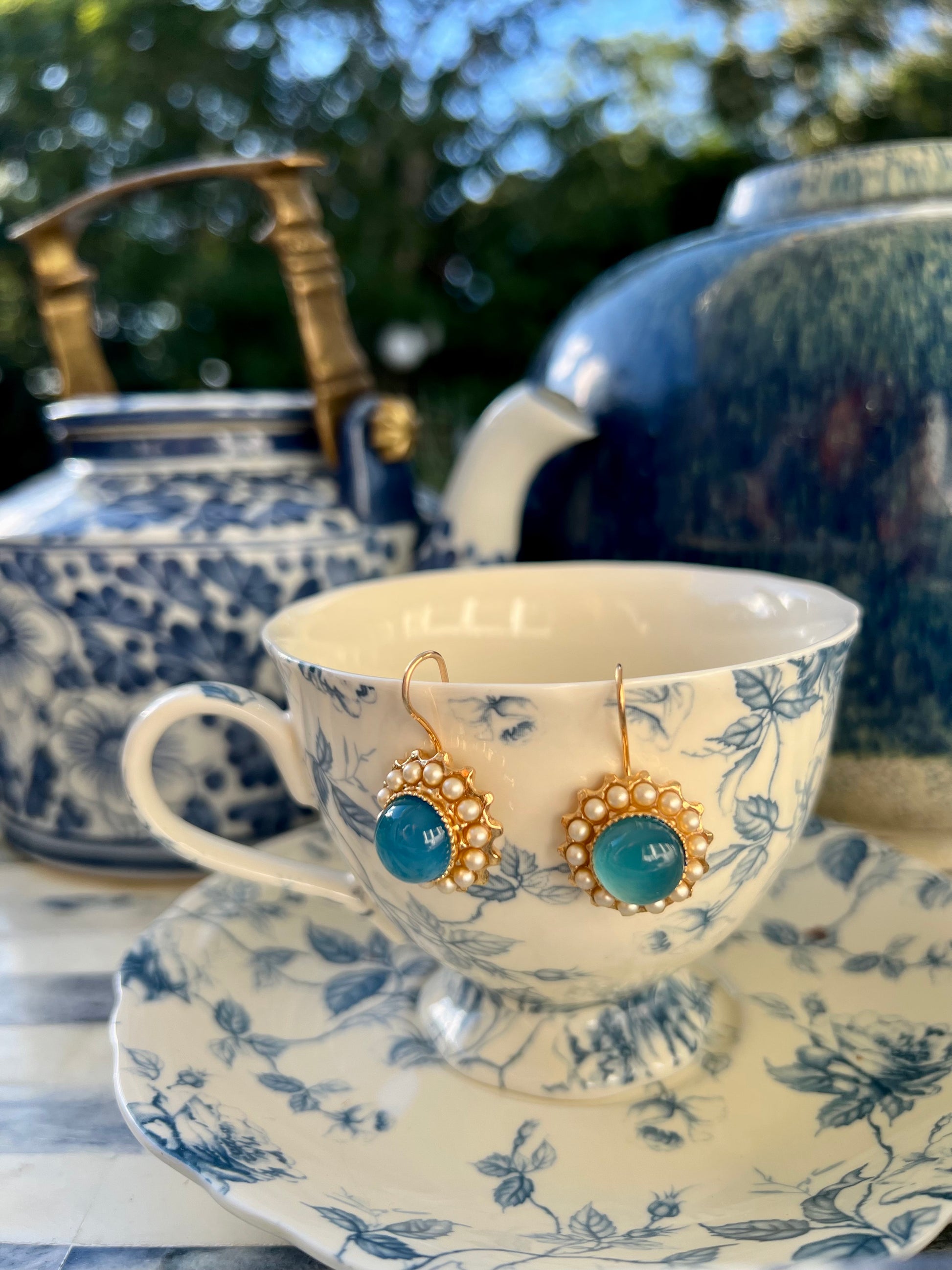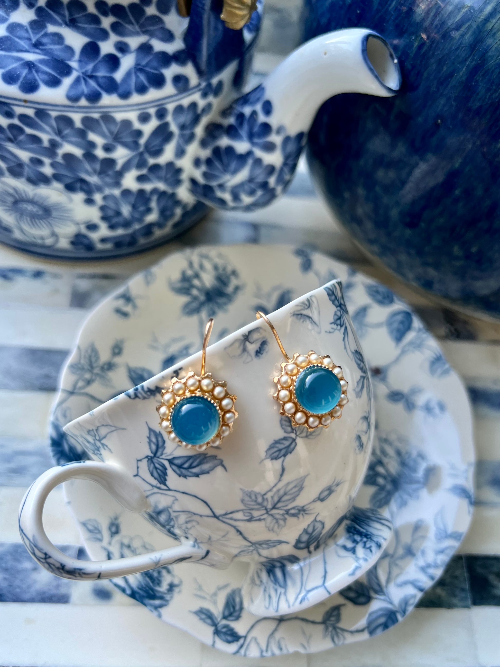Materials: Blue Agate/ Chalcedony with Pearls, Gold Plated.