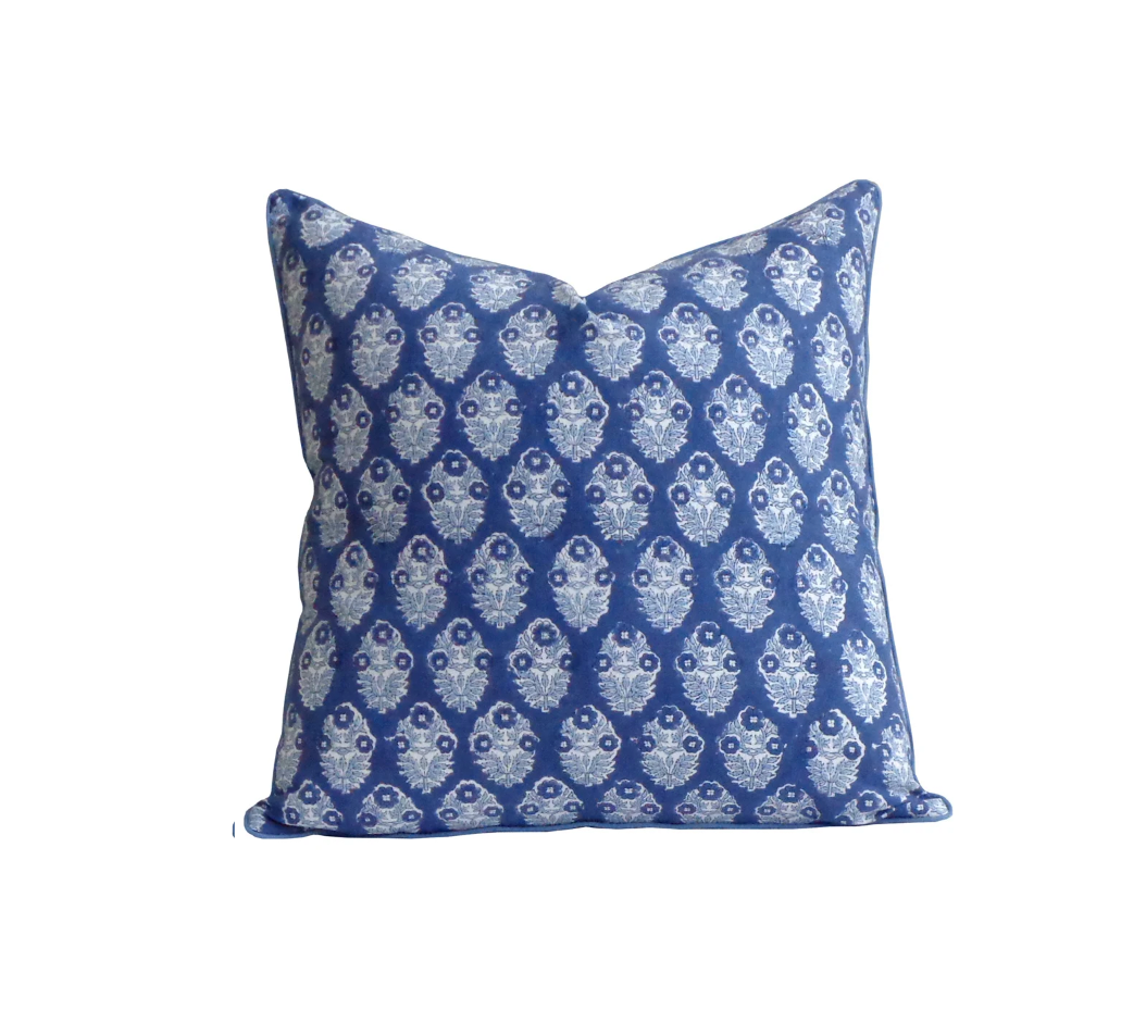 Cape Cod Navy Floral Pillow with Piping