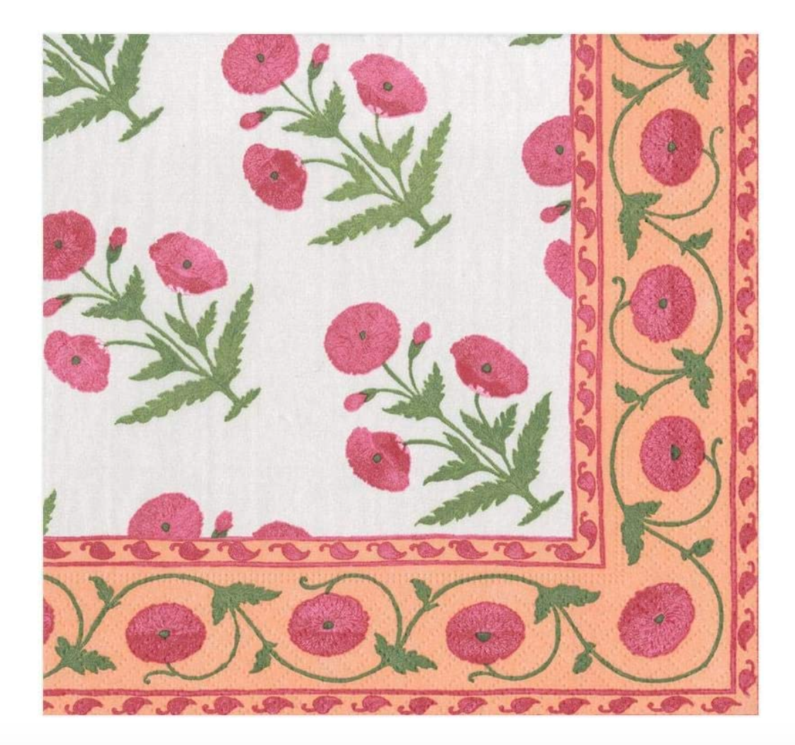 Caspari Indian Poppy Paper Luncheon Napkins in Fuchsia