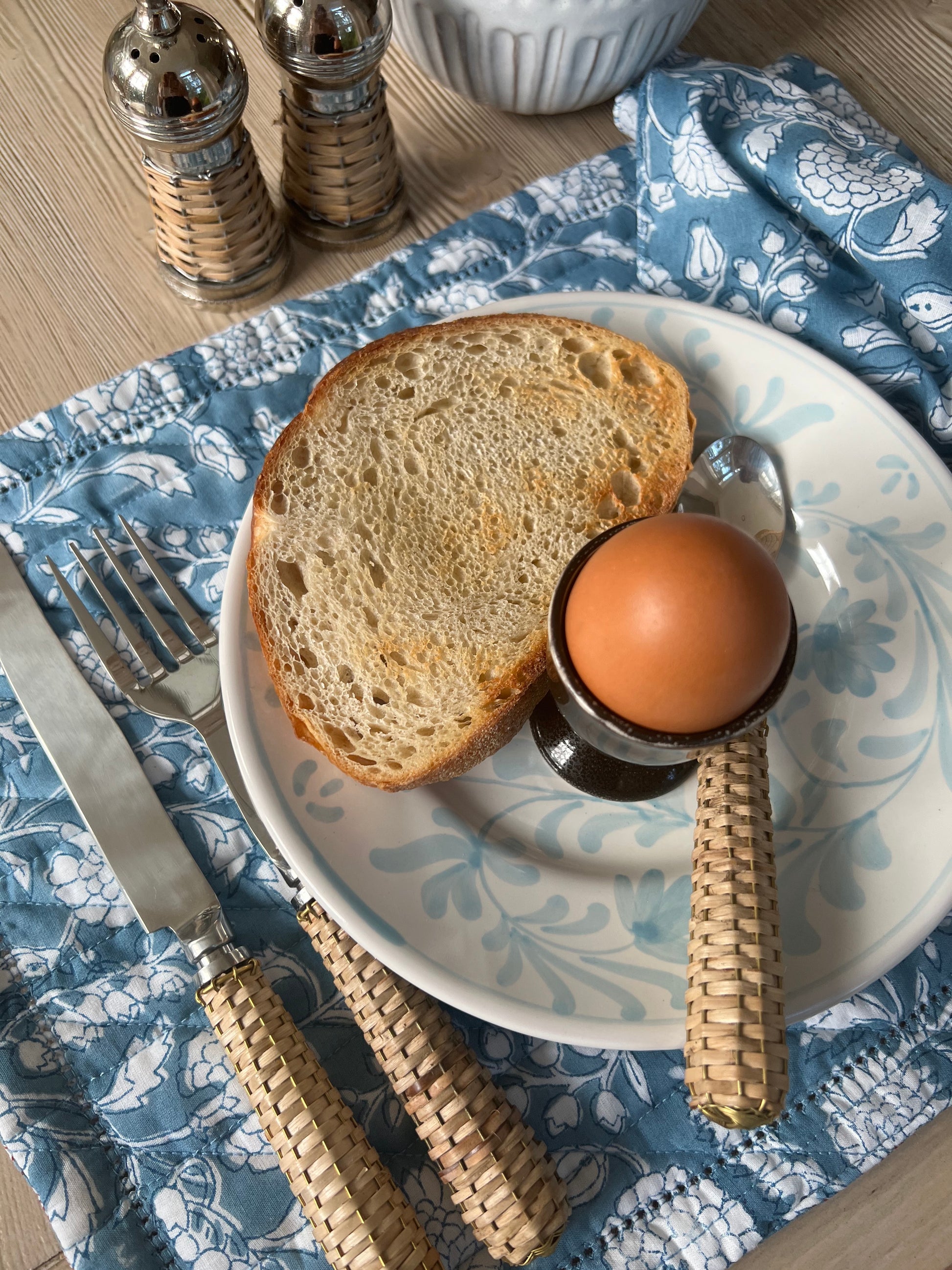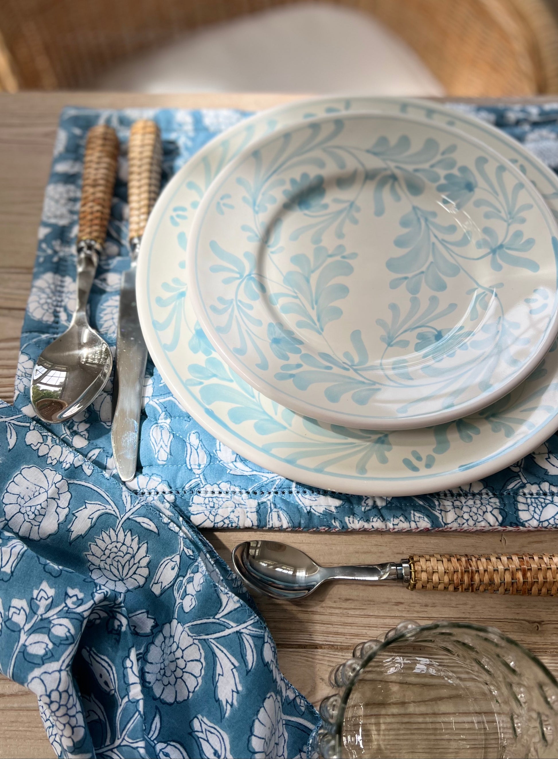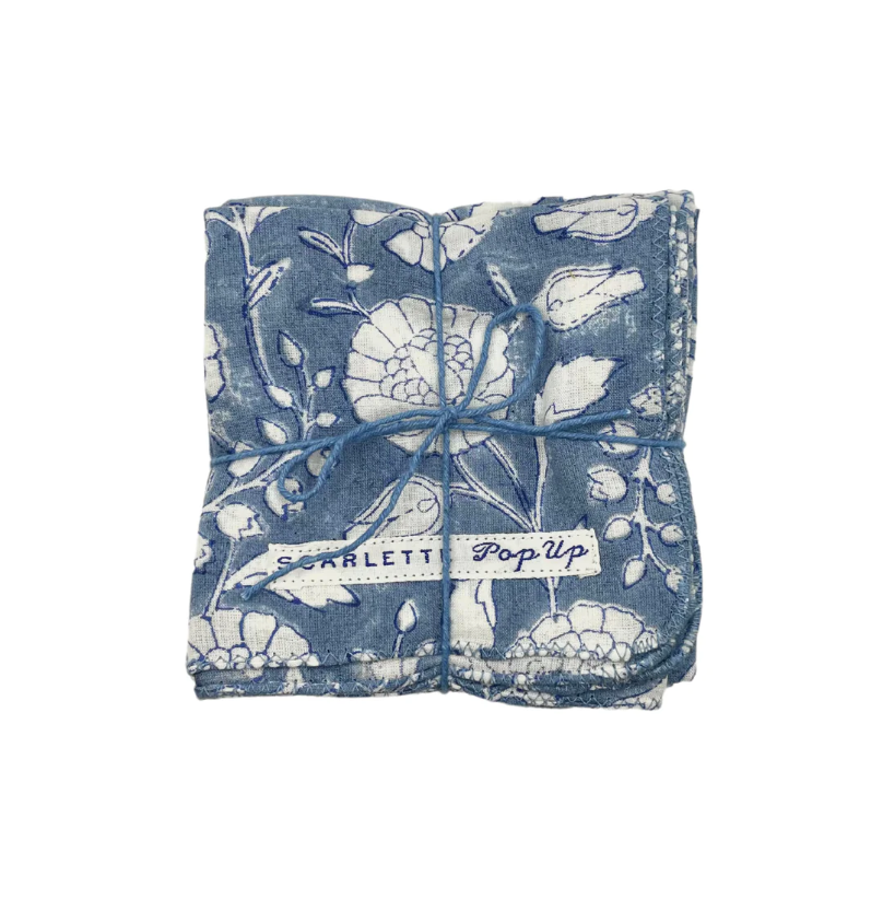 Set of 4 blue and white floral napkins.