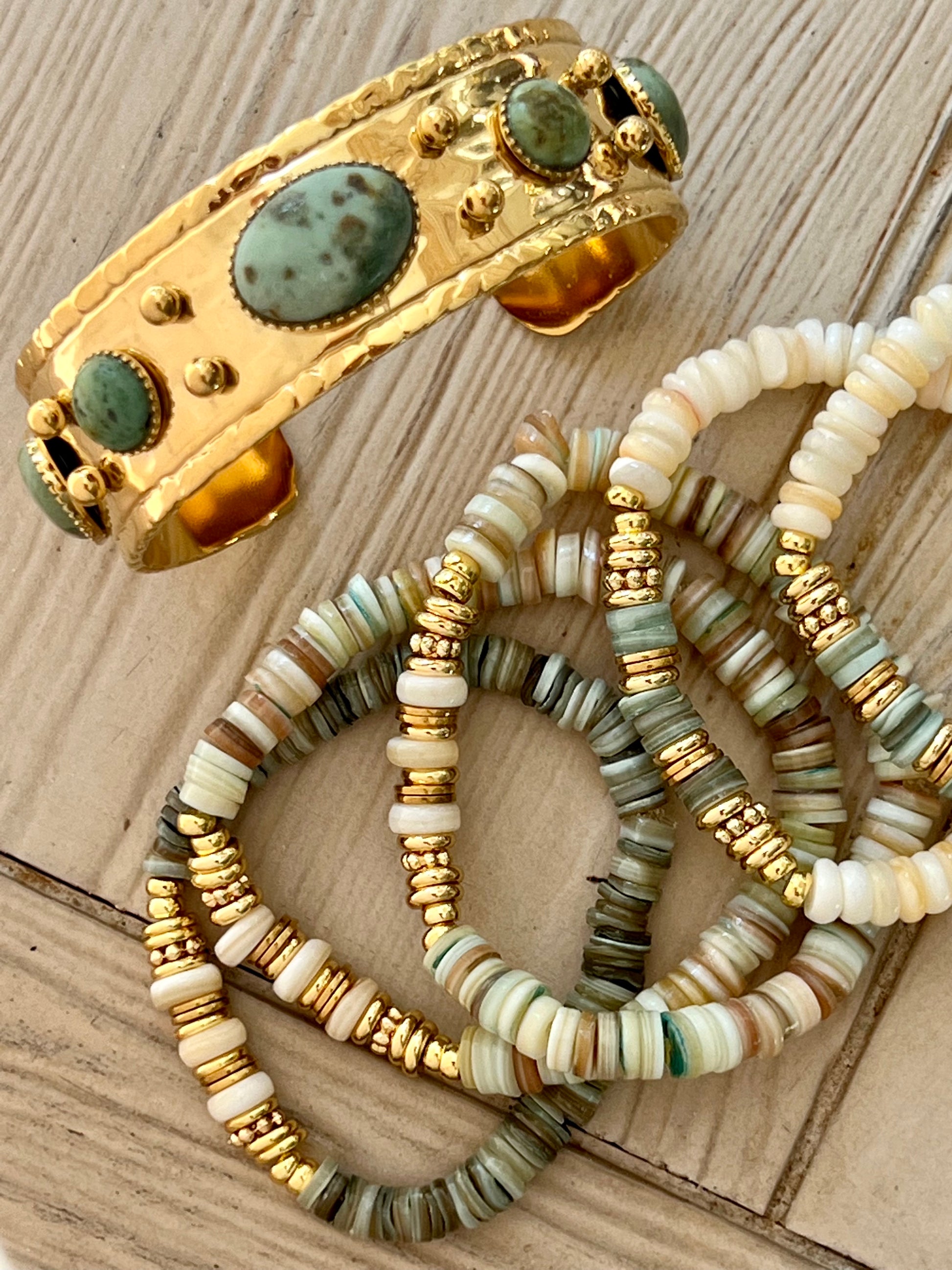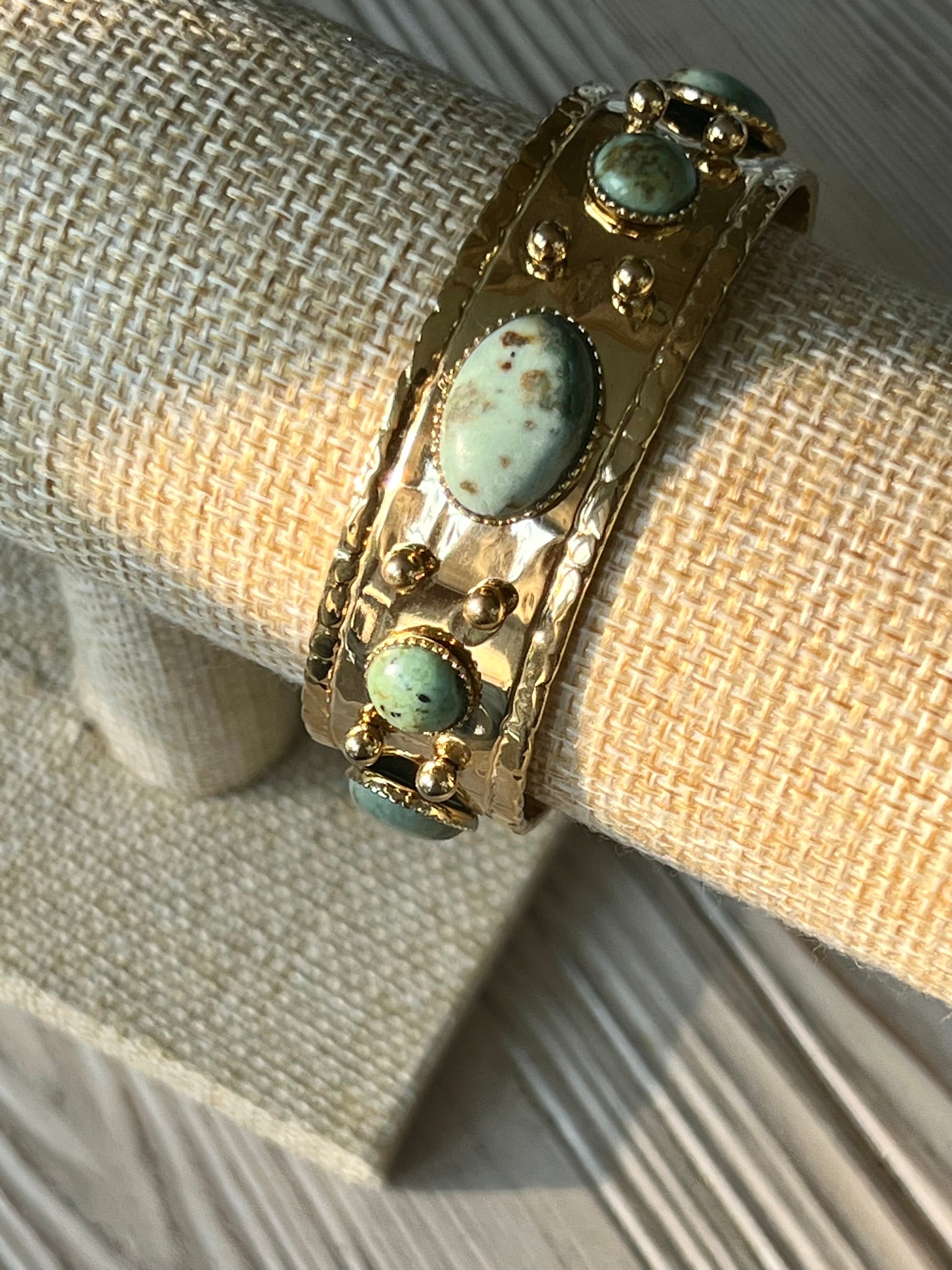 Our lovely African Turquoise cuff is made of stainless steel and stones in African turquoise. It stands out for its Boho chic style.