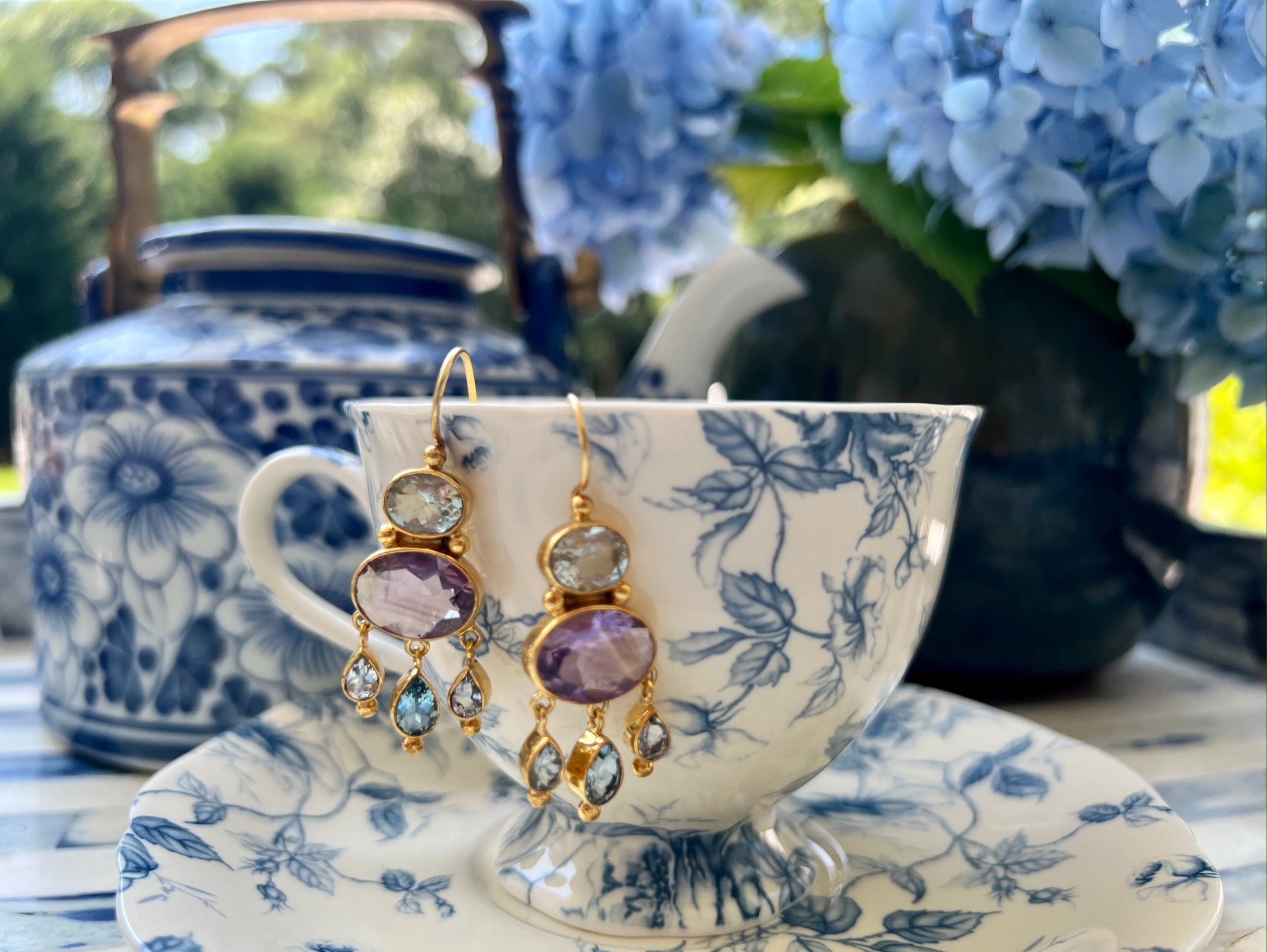 Materials : Aquamarine and Agathe Stones, Gold plated.