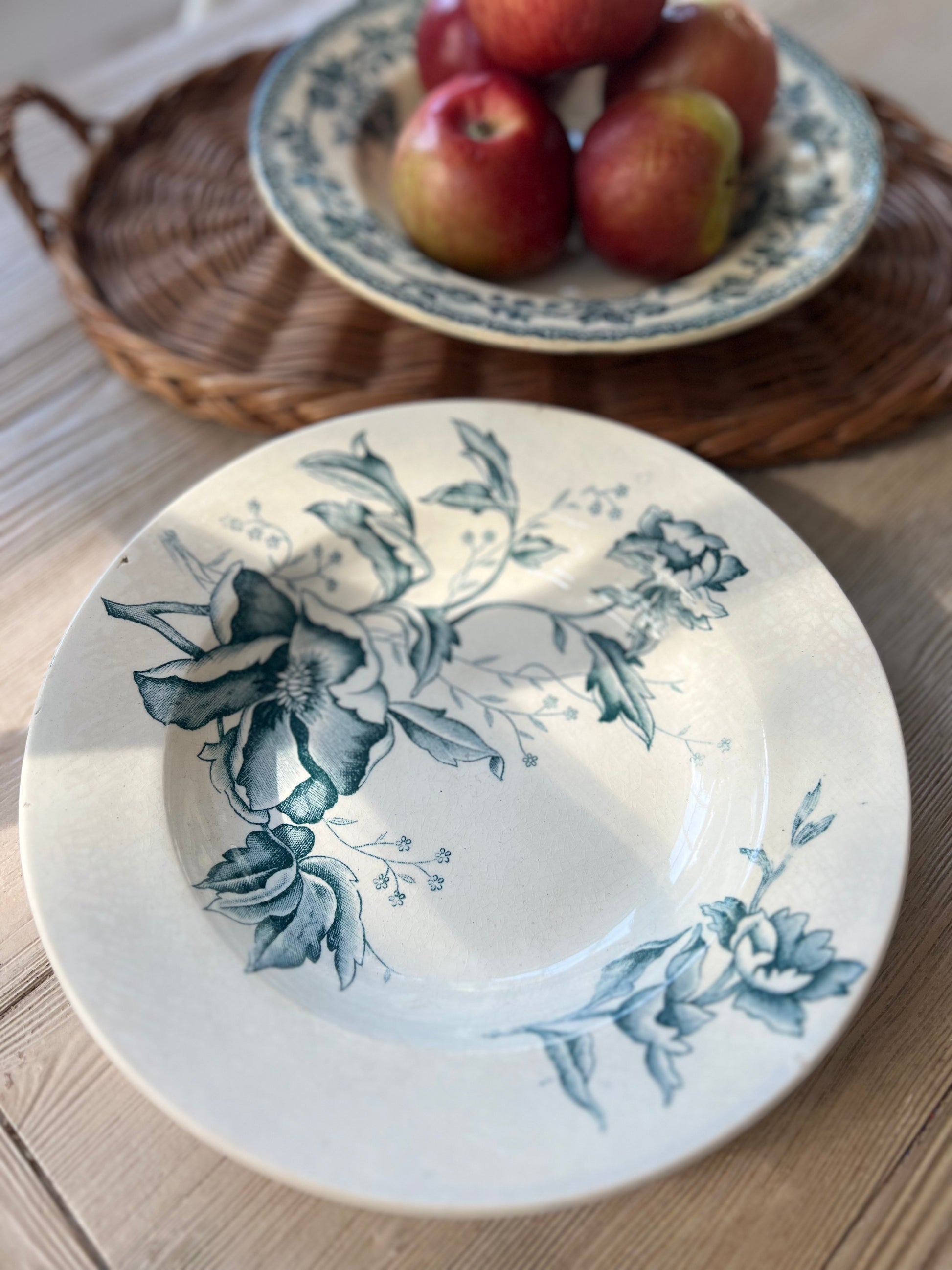 Step into the 19th-century splendor with our exquisite French 'Terre de Fer' collectible ironstone soup plate "Rose de Noël" FL. Crafted with meticulous detail, this plate evoke timeless beauty and be easily mixed with other patterns.