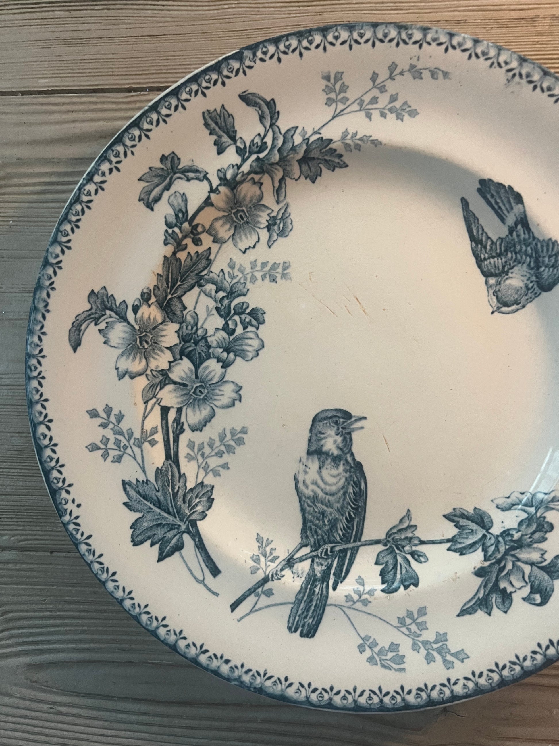 French Dinner Plate "Mésanges" by Longwy