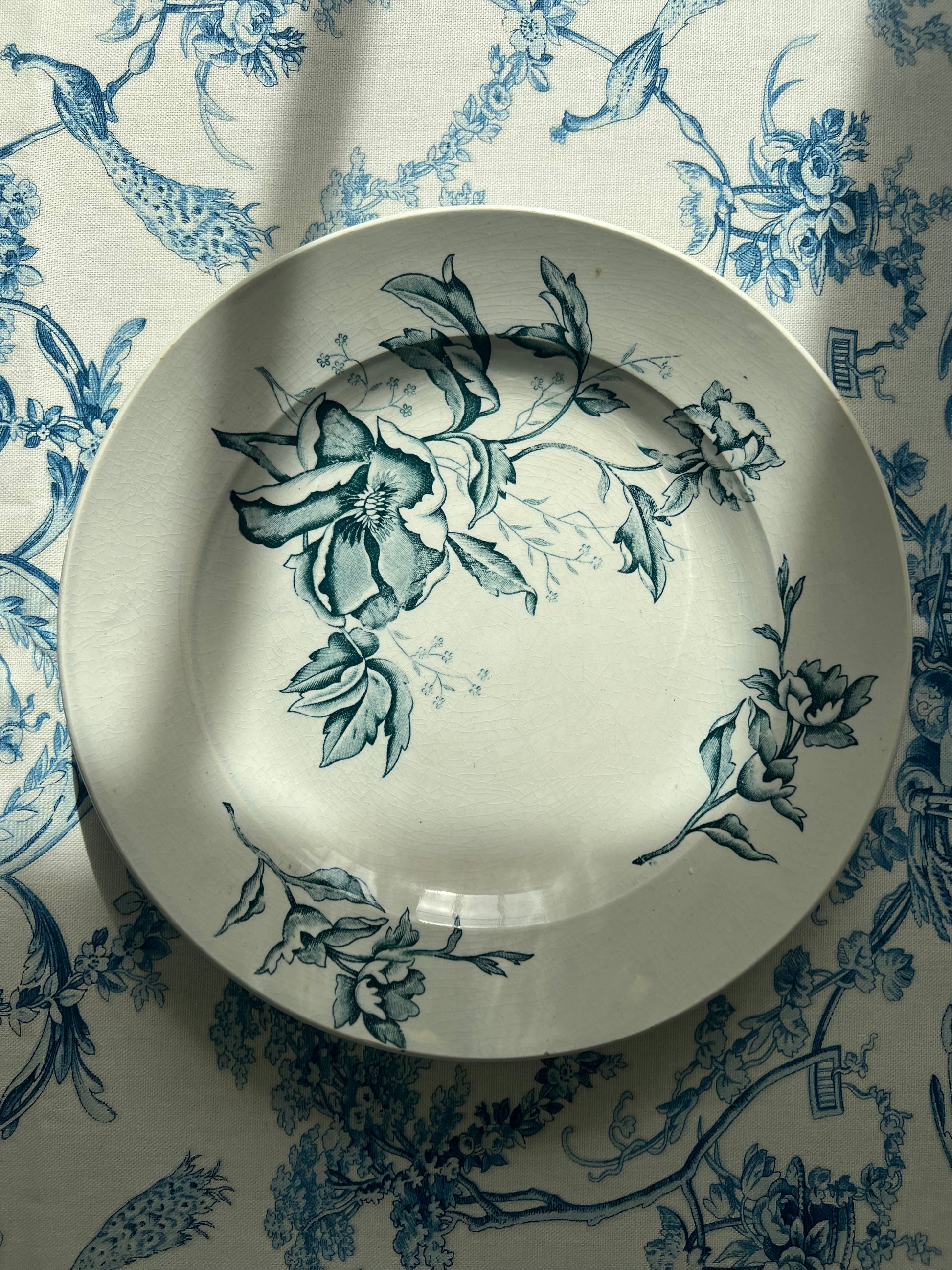 Carefully crafted with fine detail, this plate captures a sense of timeless elegance. Subtle marks and imperfections add character and serve as gentle reminders of its storied past and genuine vintage charm.