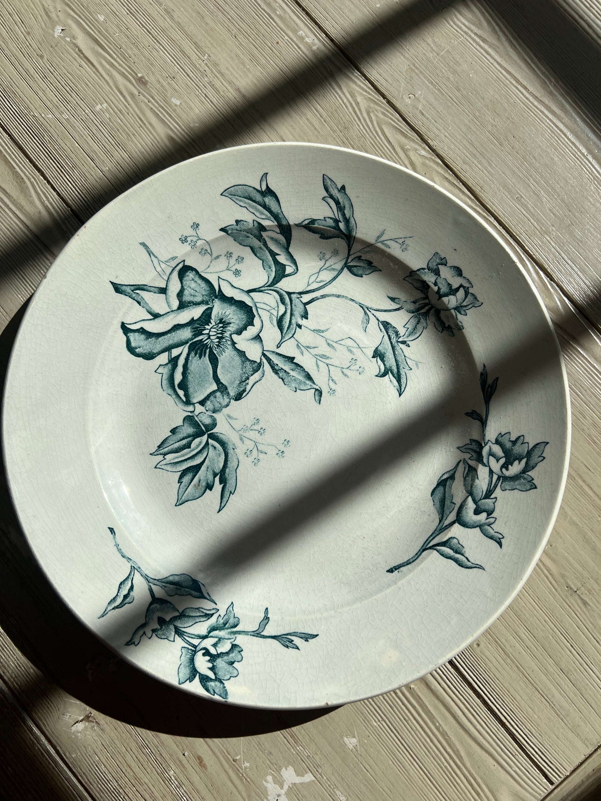 Step into the 19th-century splendor with our exquisite French 'Terre de Fer' serving plate (ironstone) - "Rose de Noël" pattern.