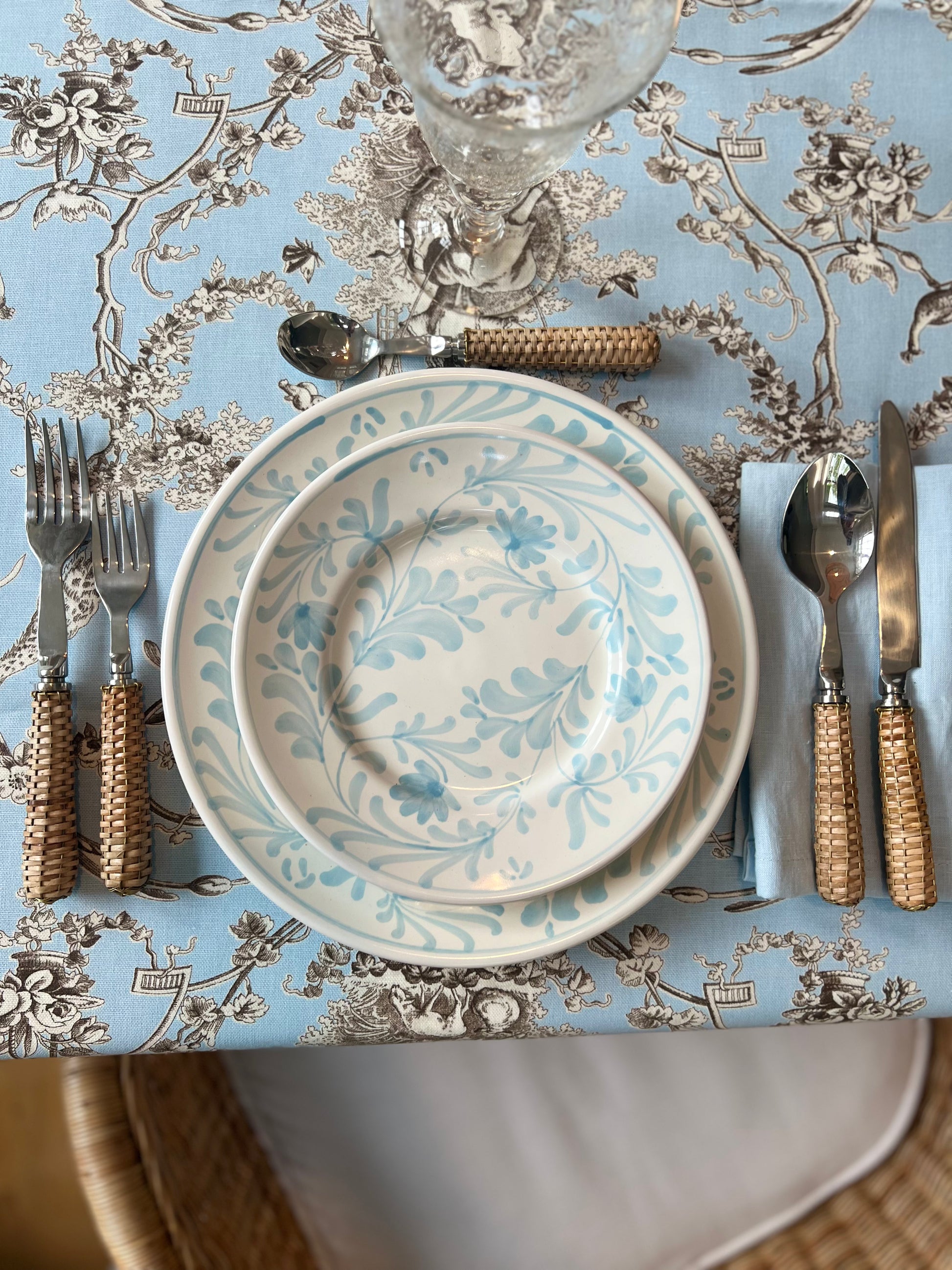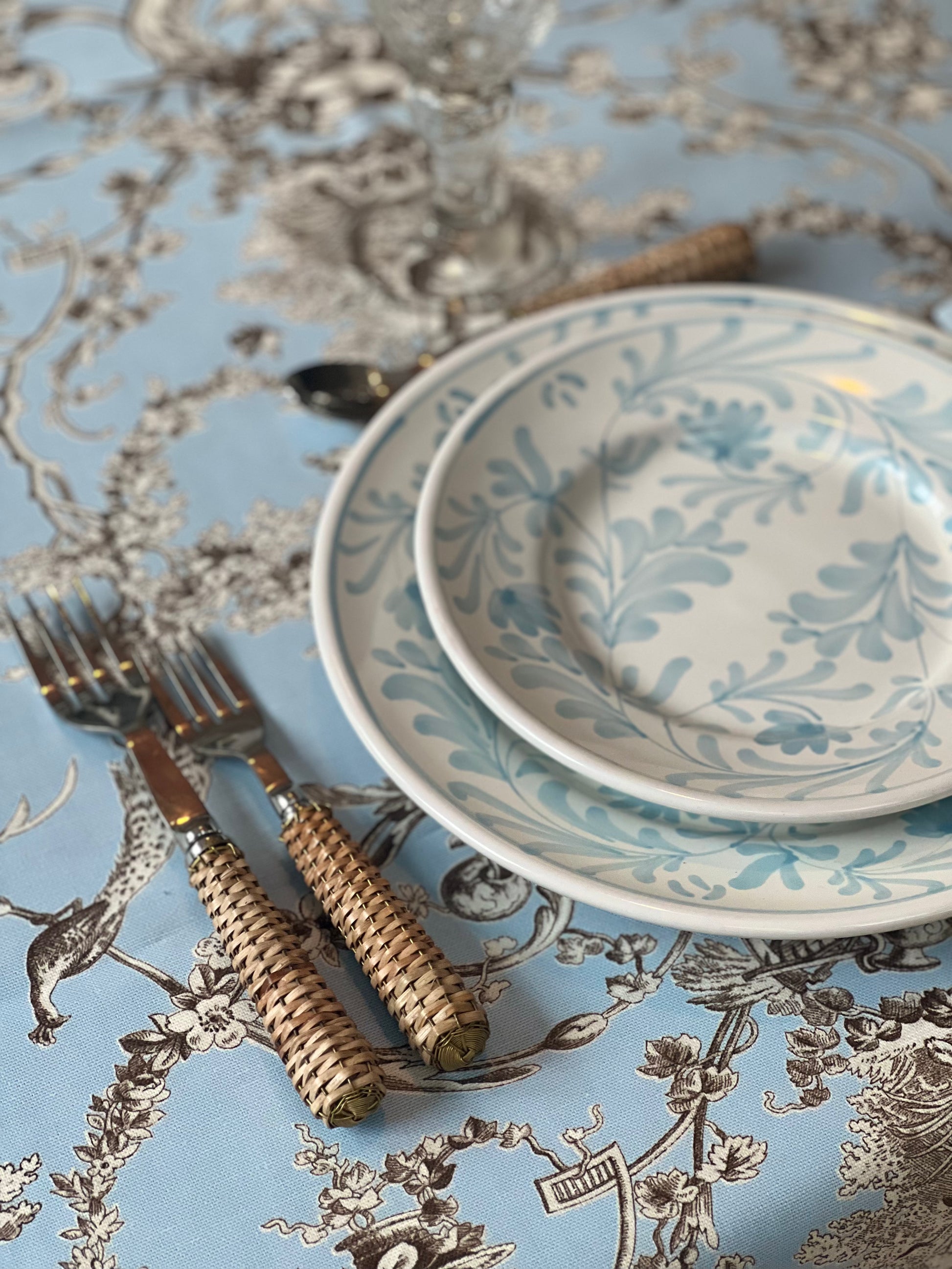 French Toile Tablecloth Ludivine in Baby Blue and Brown