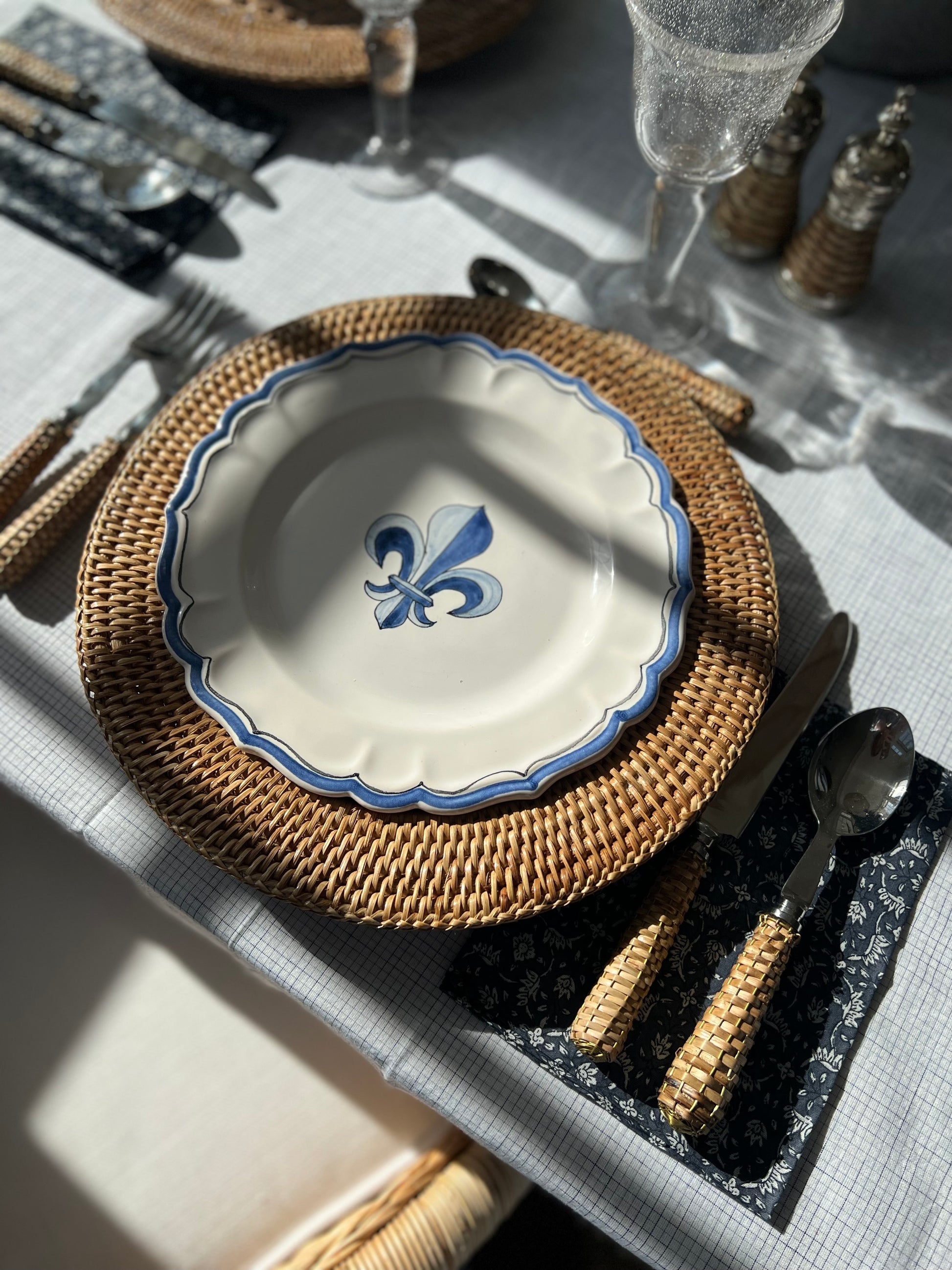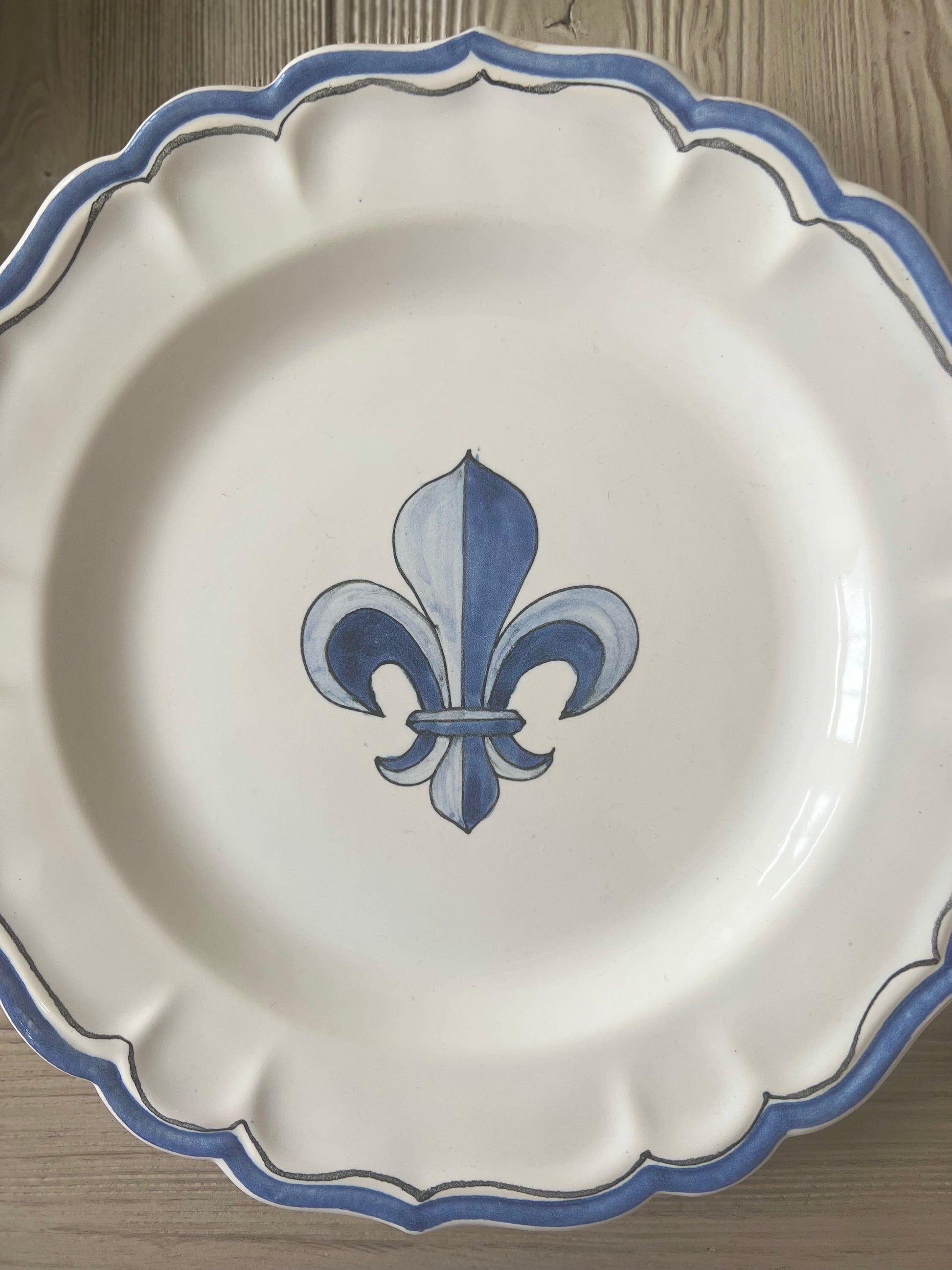 Discover a piece of French heritage with this exquisite vintage decorative plate, unearthed from a antique market in France. This hand-painted plate features a timeless fleur-de-lis motif, symbolizing elegance, nobility, and the rich history of French culture. Crafted in the 20th century, its delicate design and intricate detailing evoke a sense of nostalgia and charm. Complete with a built-in wall hook for effortless display, this unique piece is sure to add a touch of vintage French allure to any space.