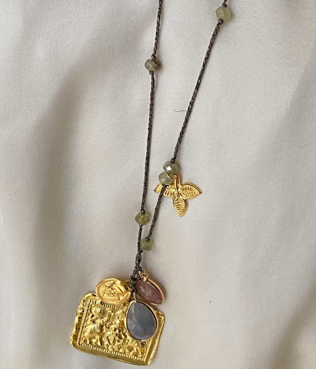 Length 85 cm adjustable. We love these beautiful pendants matched with a nice selection of stones Wonderful Indian medals for a boho chic style.