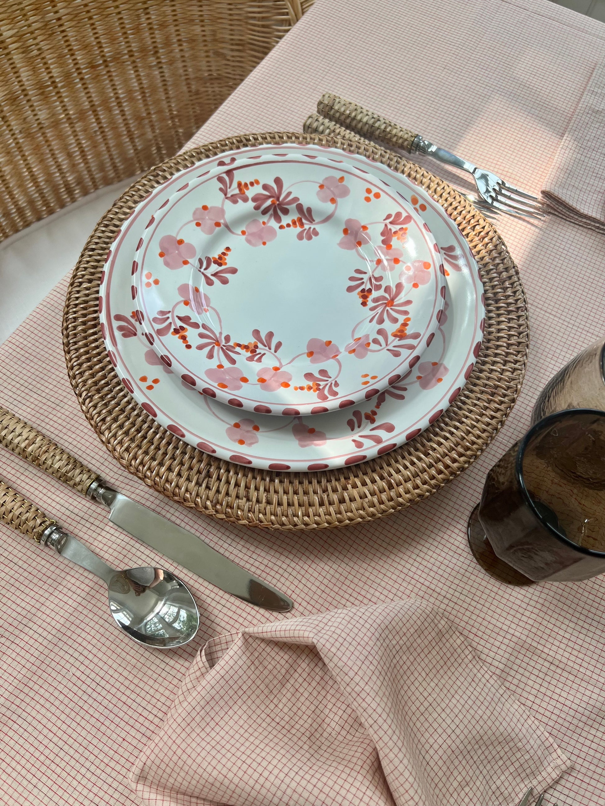 Set of 8 lovely pink checkered napkins, for delicate tables and their warm guests.