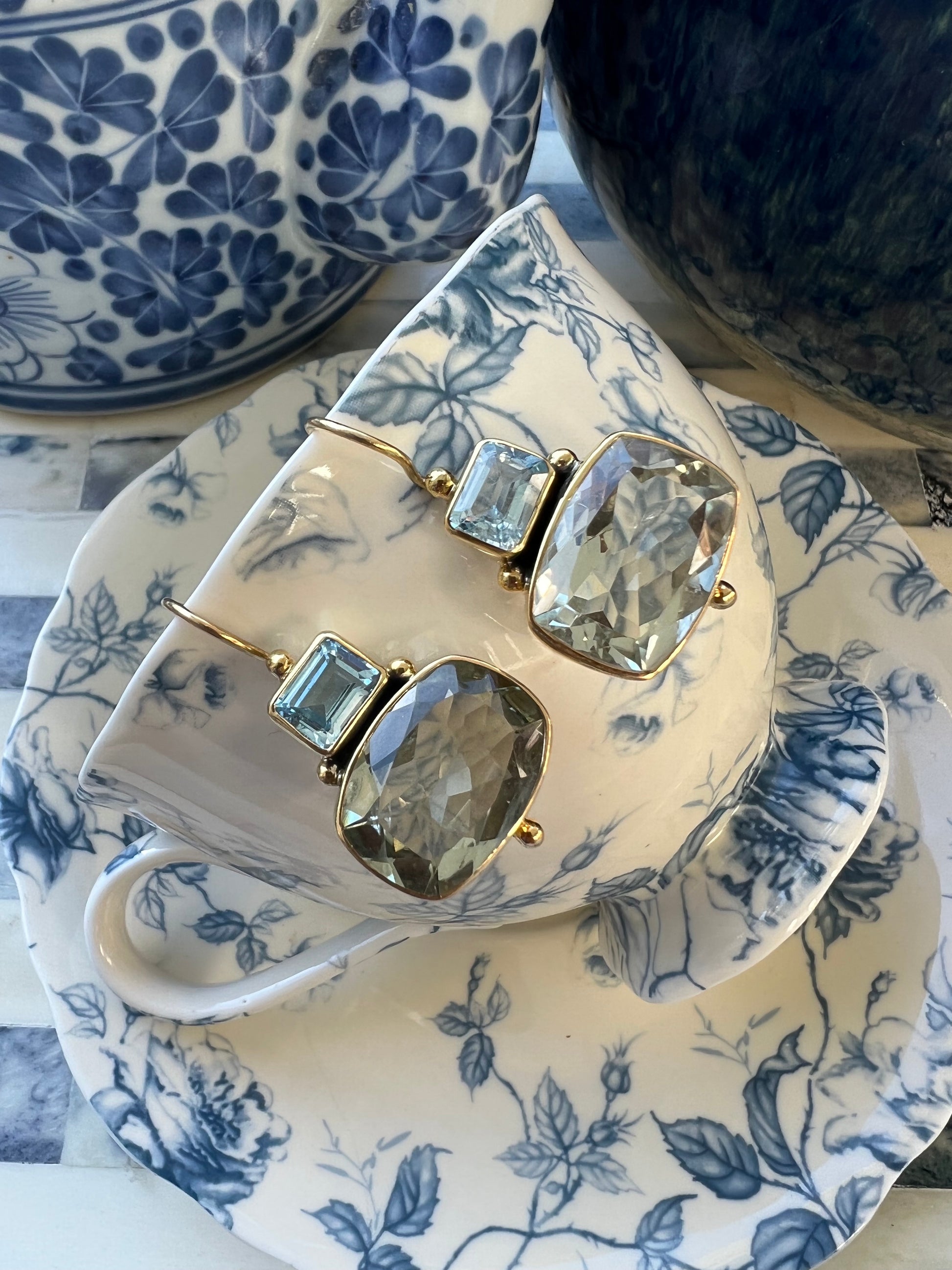 Materials : Green Amethyst and Blue Topaz Silver Gold Plated.