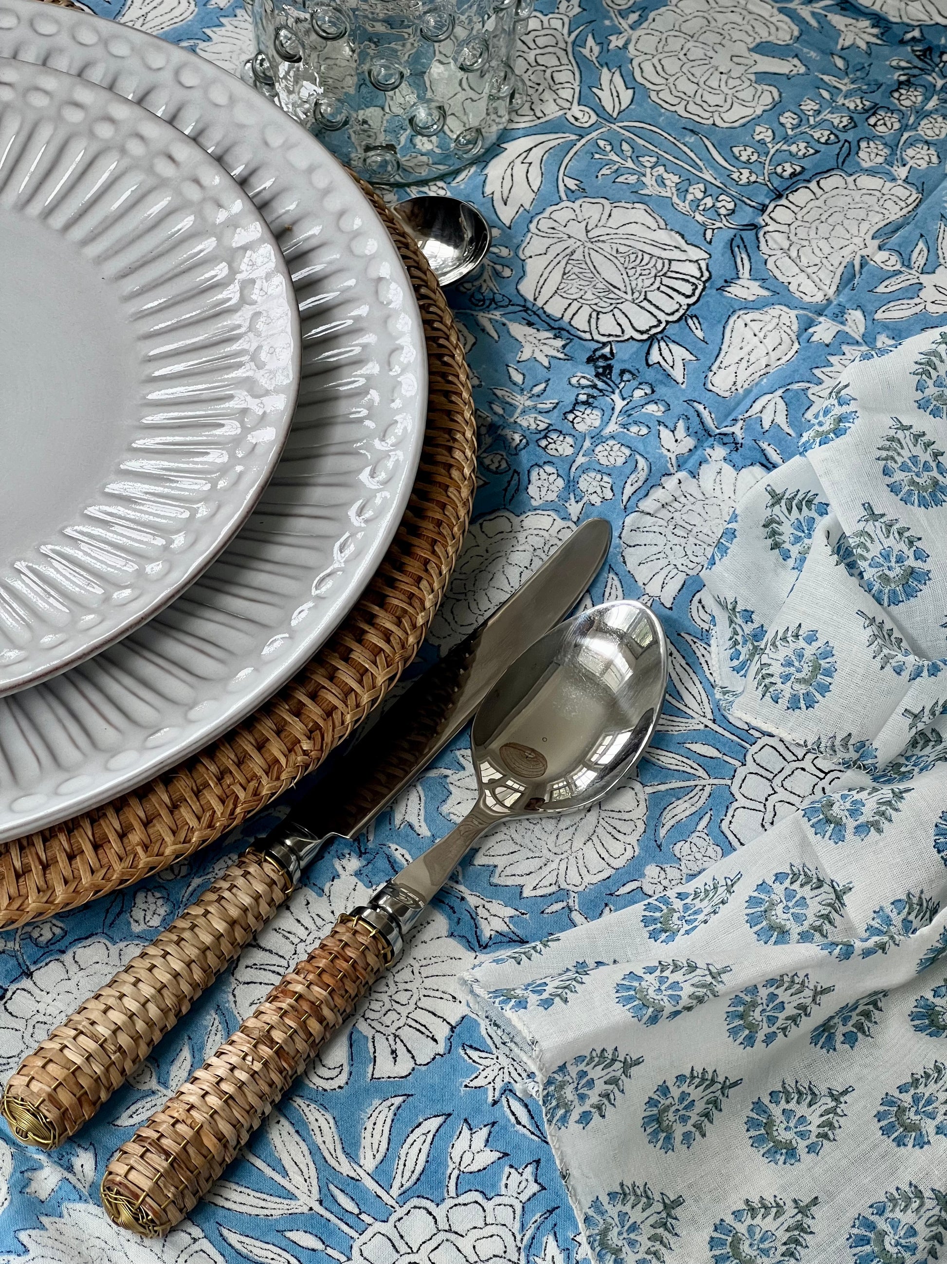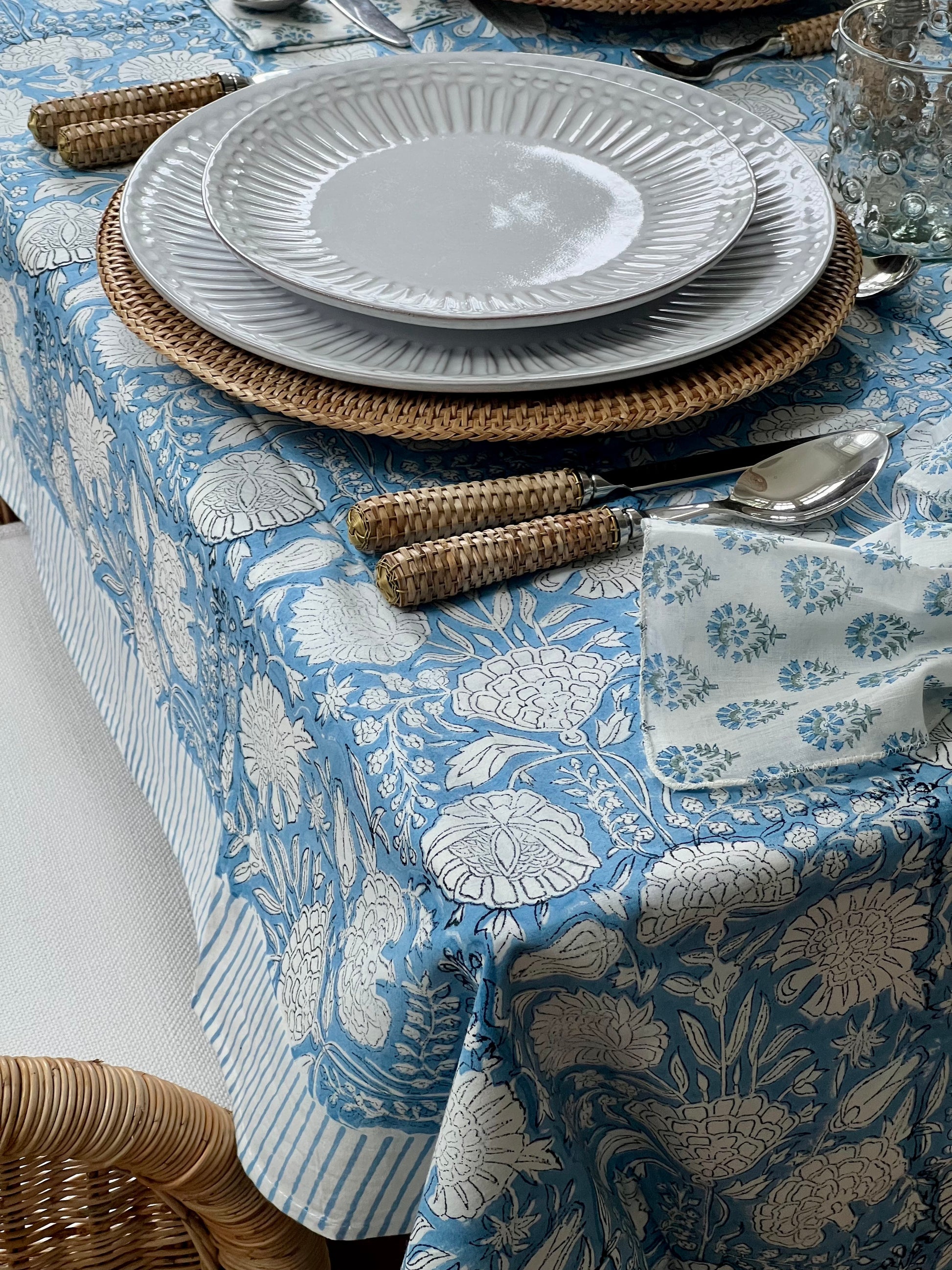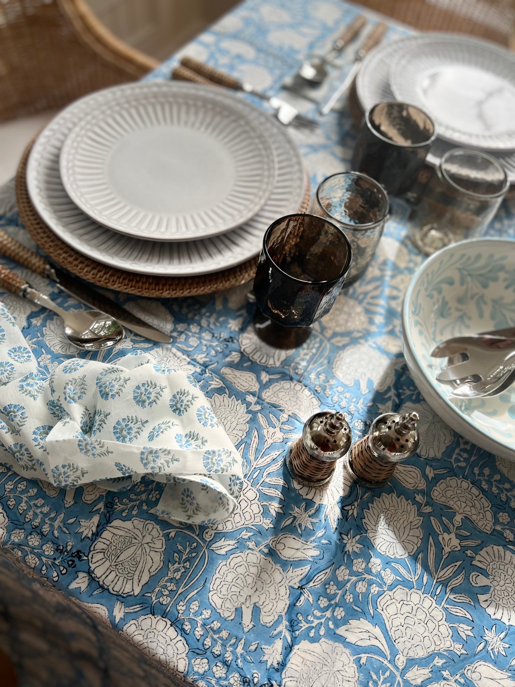 Harwich Blue Floral Block Print Tablecloth (Large)
