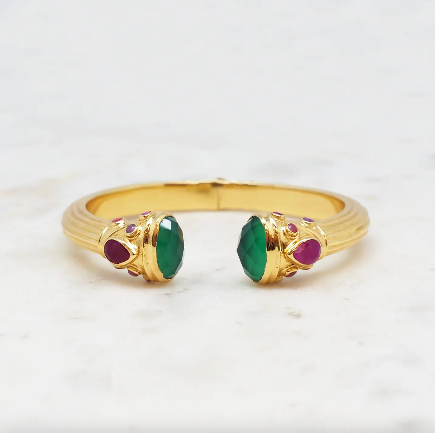 Heritage Bangle Green Onyx and Rubies by Niiki Paris