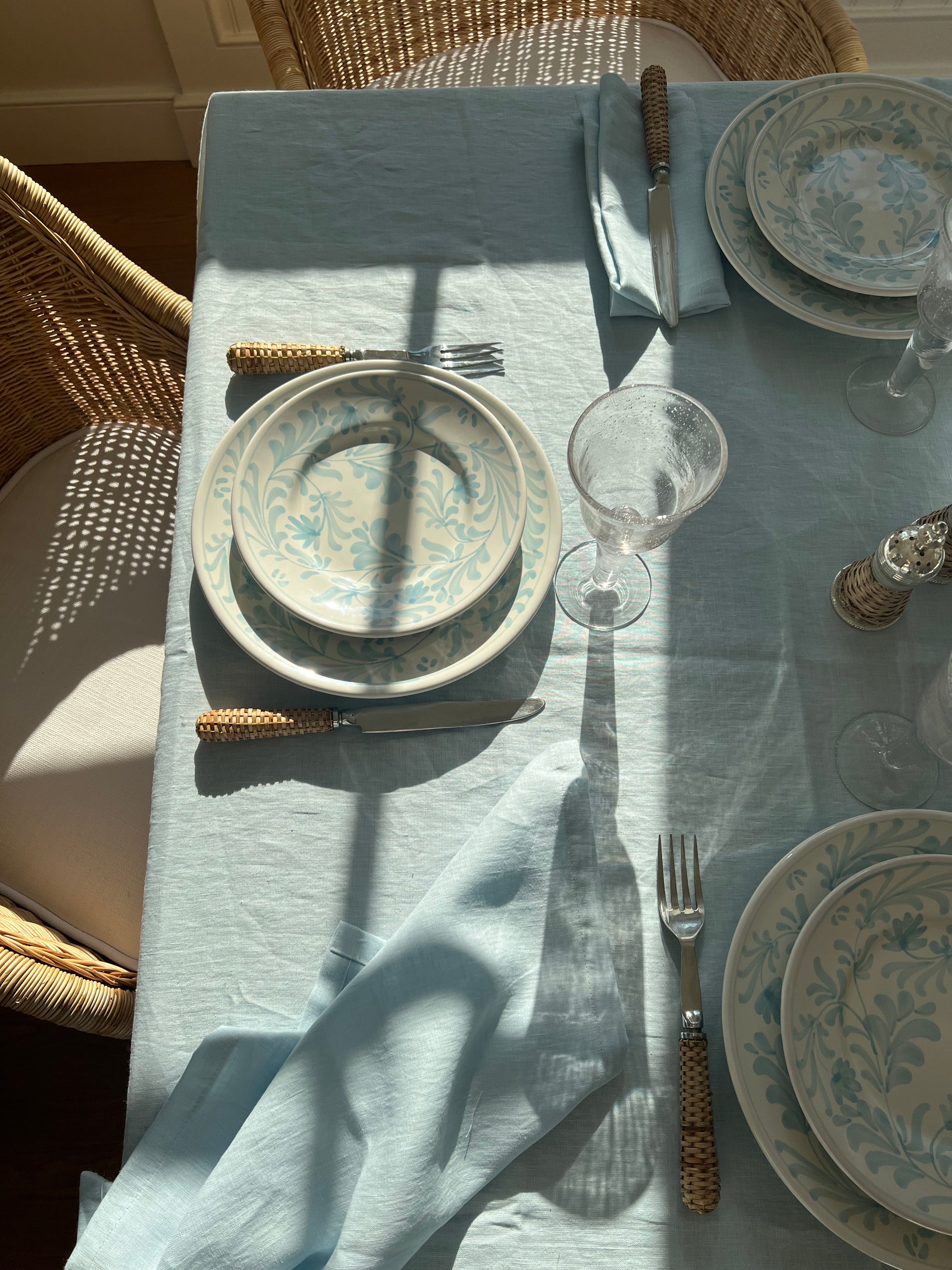 Elevate your dining experience with our exquisite icy blue linen napkins, crafted in Greece to complement the matching tablecloth from the same collection. Measuring 16.5 x 16.5 inches (42 x 42 cm), these napkins are made from high-quality linen, offering a touch of elegance and durability to your table setting.