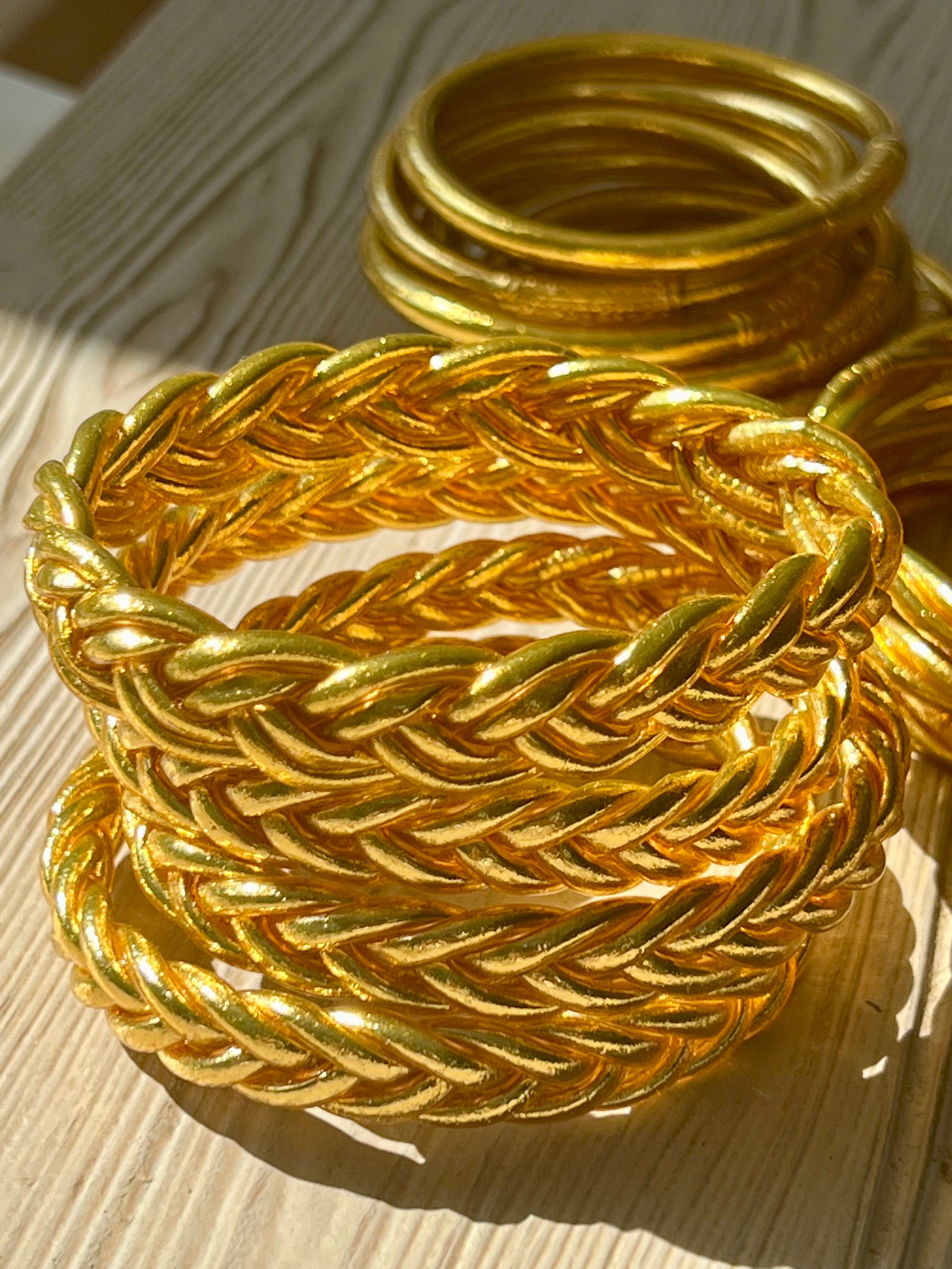 Kumali is a collection of blessed, braided bracelets with gold leaves. The jewelry is lightweight, flexible, waterproof and time resistant.