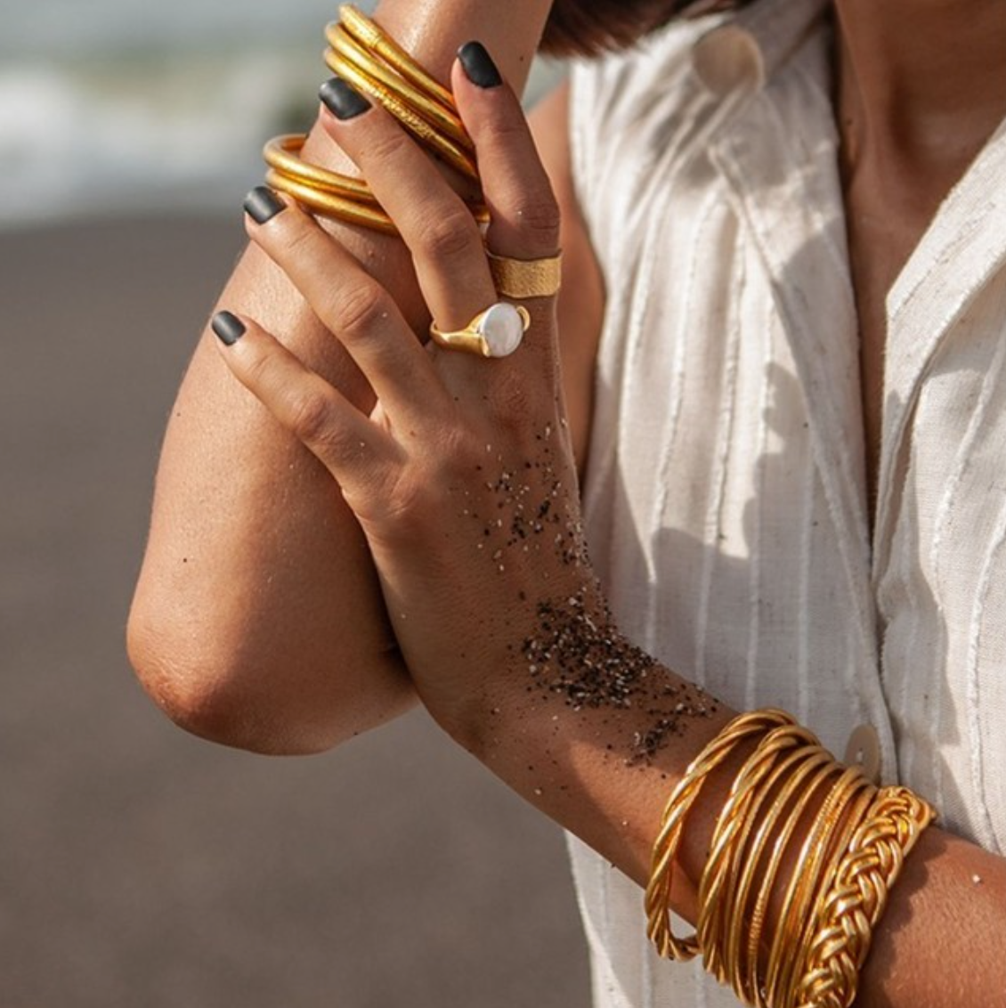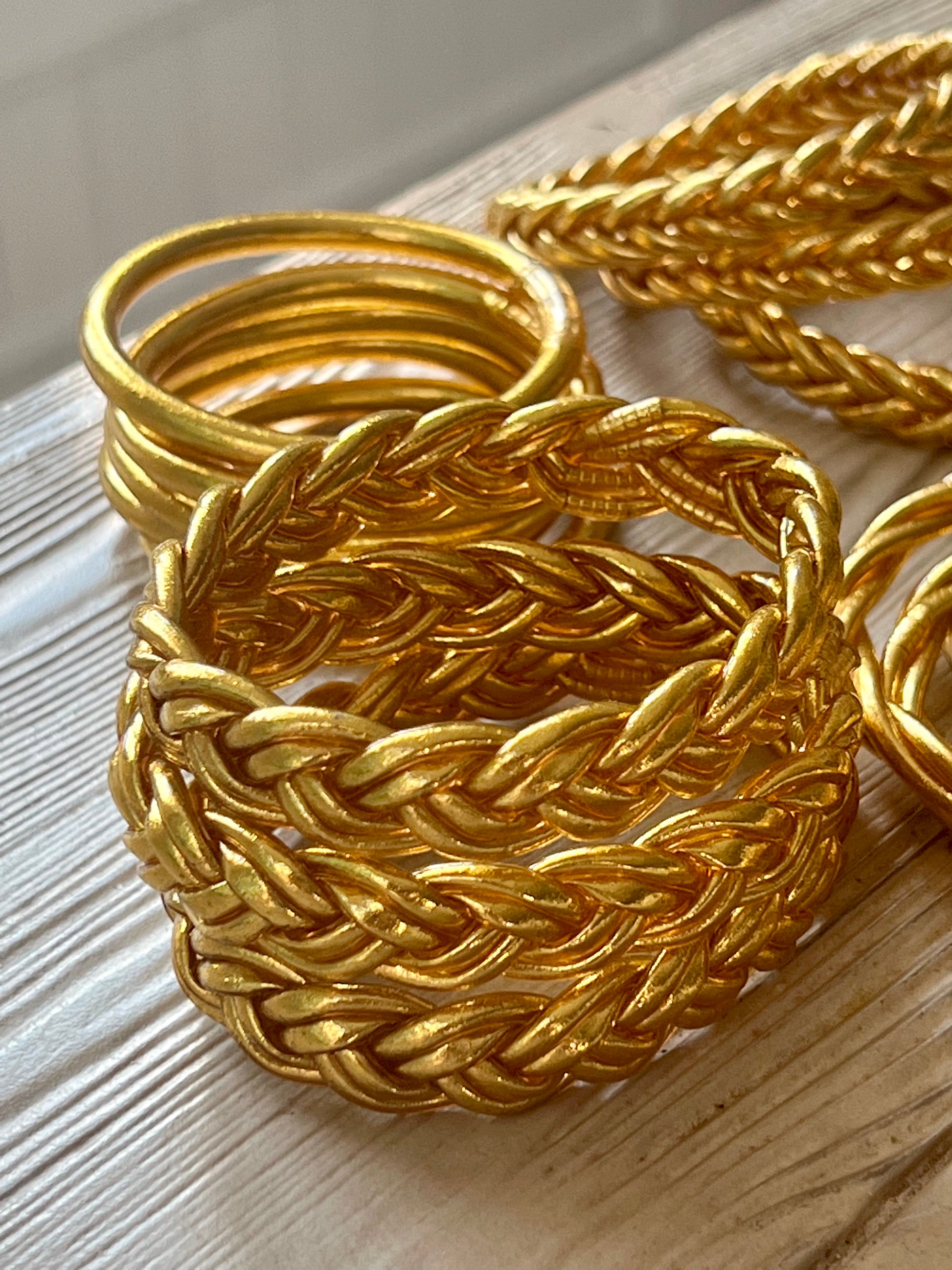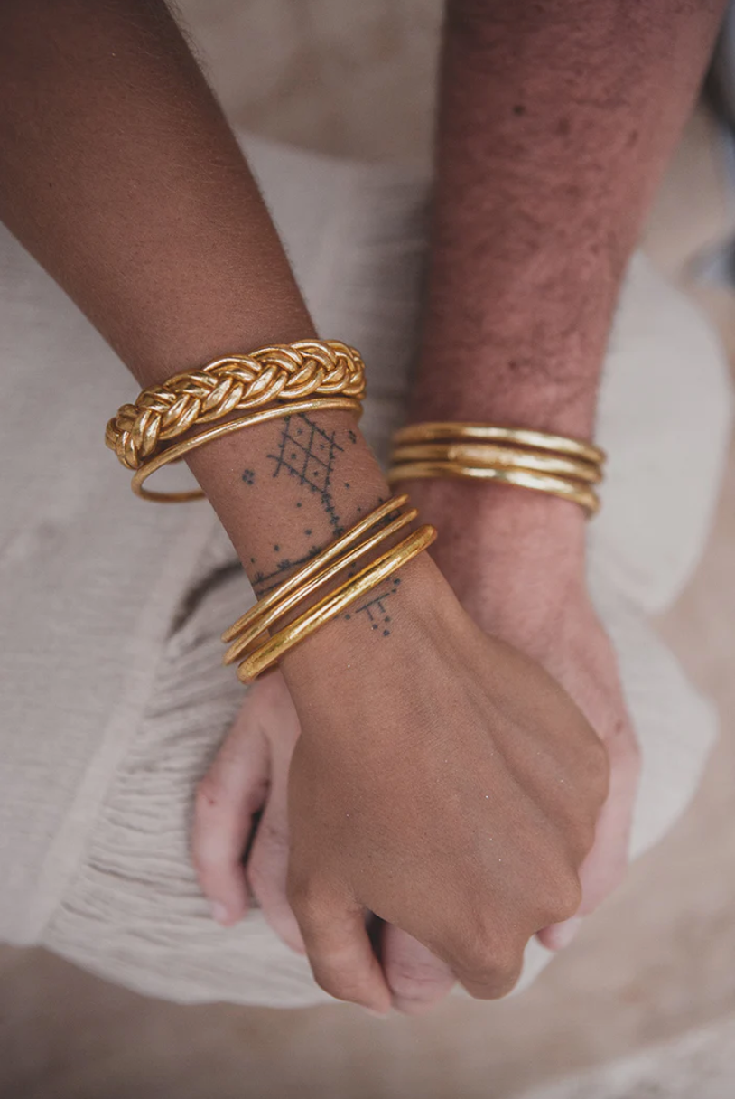 Kumali is a collection of blessed, braided bracelets with gold leaves. The jewelry is lightweight, flexible, waterproof and time resistant.