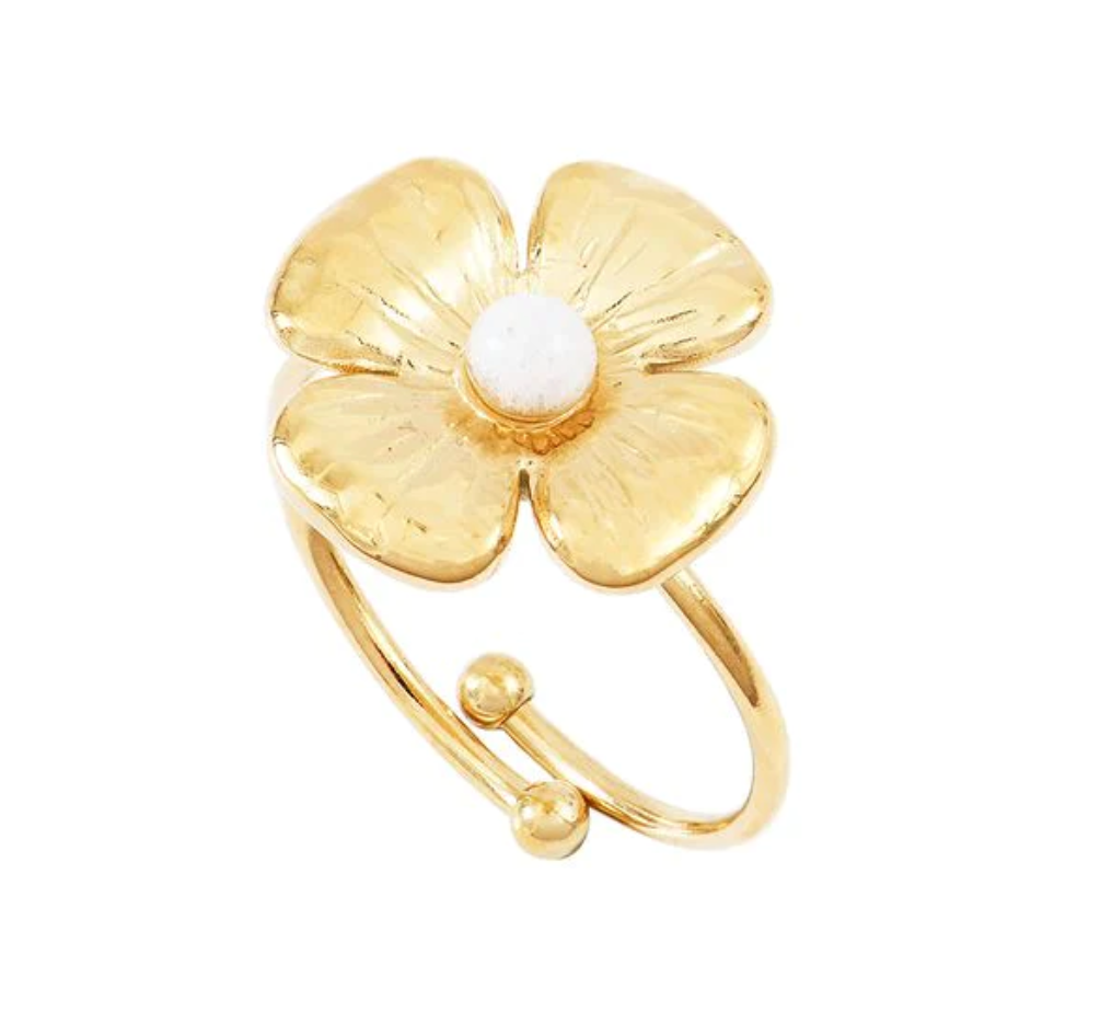 A beautiful ornate boho chic ring for a hippie-chic effect that will elevate your fingertips! This charming ring features a clover design embellished with a delicate semi-precious stone.