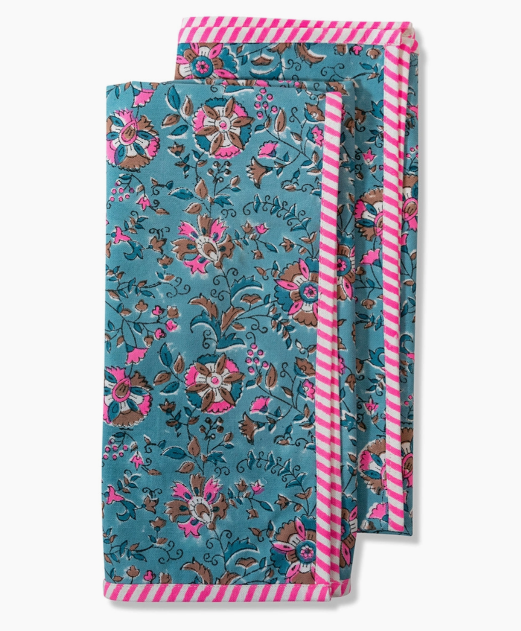 Chic and timeless, these pretty blockprint kitchen towels elevate the everyday and add a colorful charm to your kitchen or powder room.
