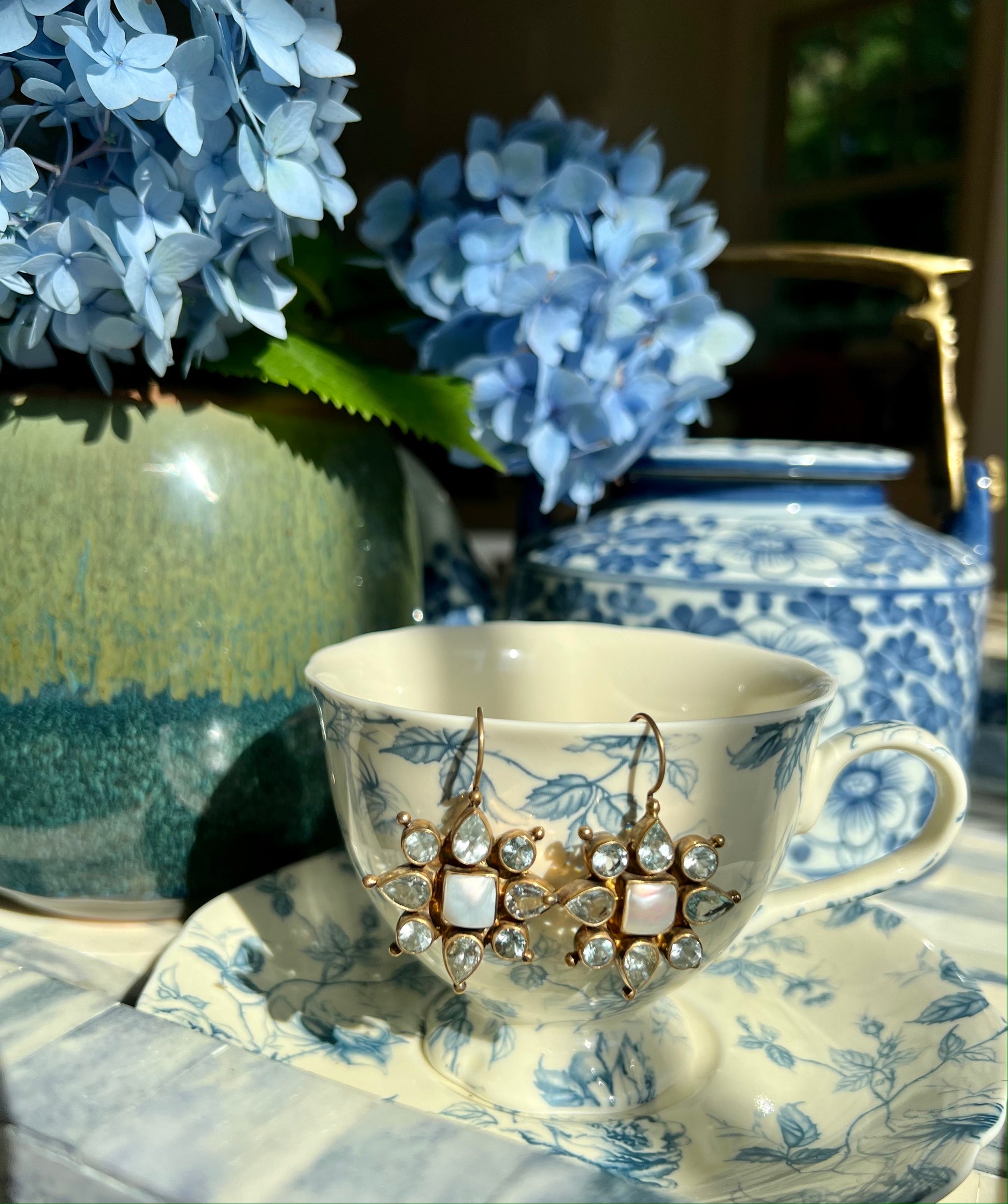 Materials : Pearl and Blue Topaz, Gold Plated.
