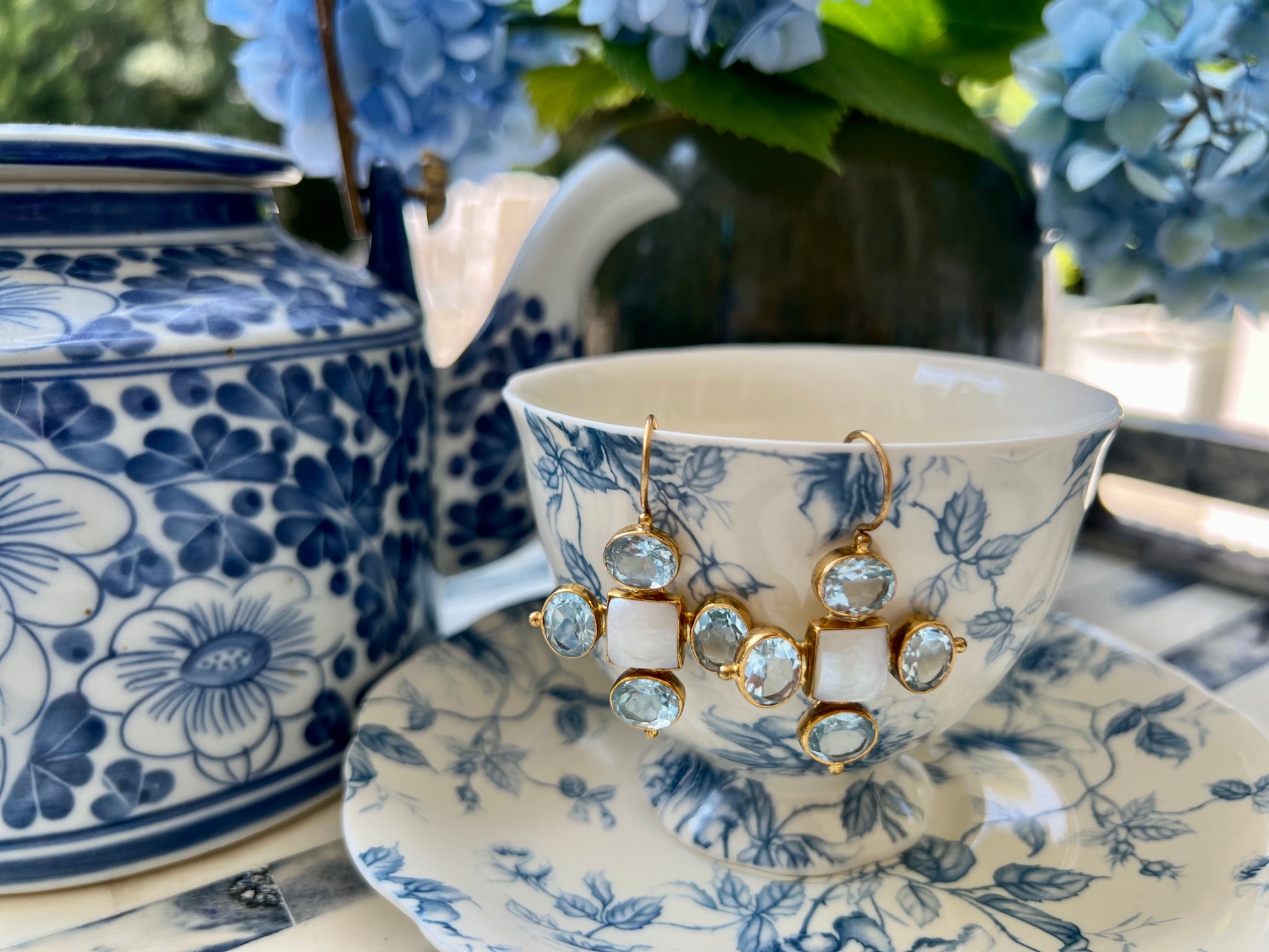 Pearl and Blue Topaz Earrings