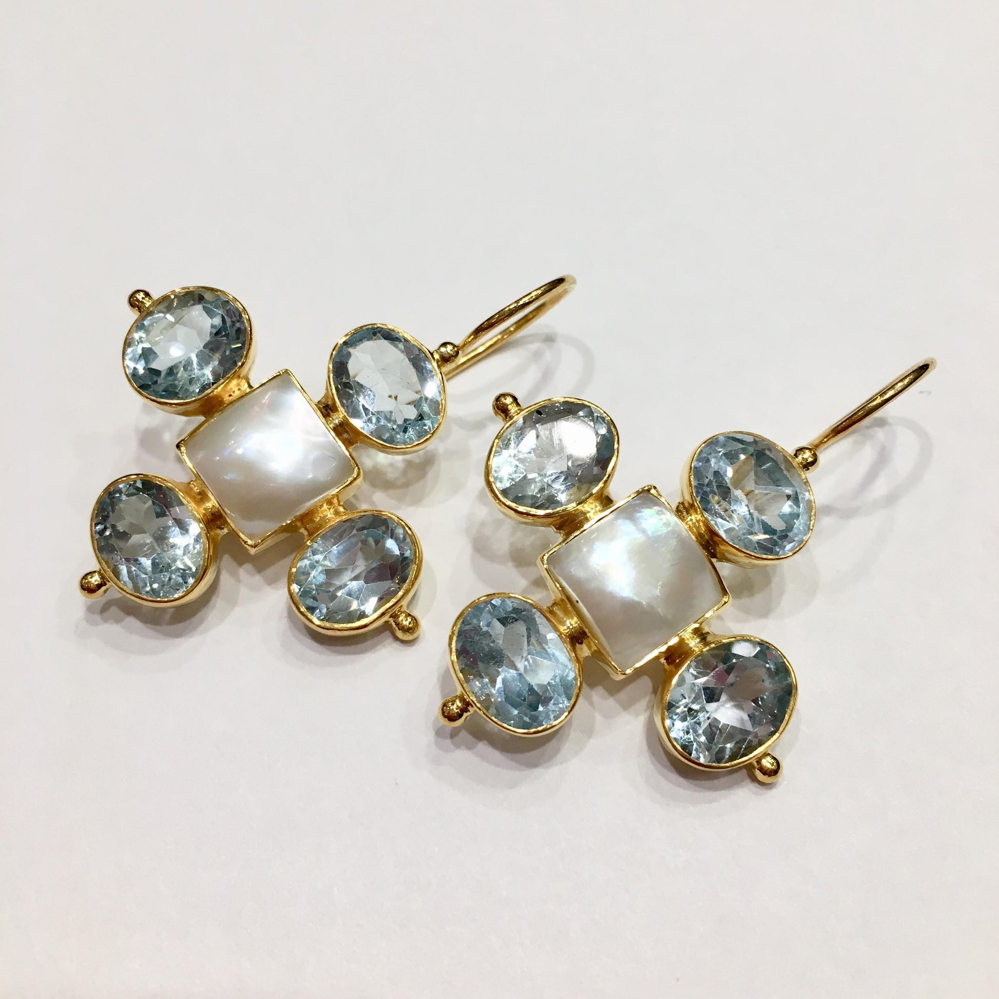 Materials : Pearl and Blue Topaz, Gold Plated.