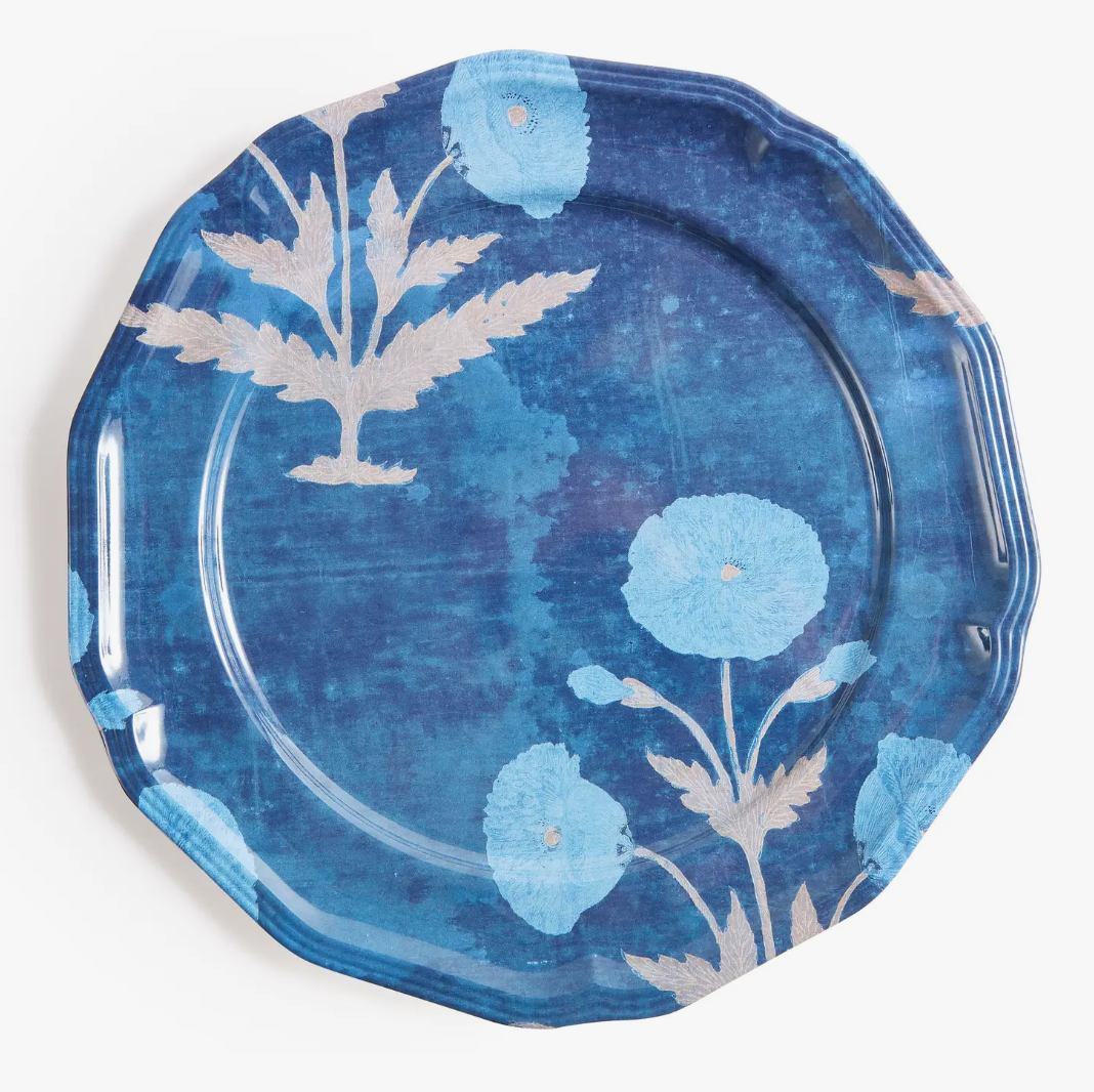 Inspired by vintage Indian textiles, these beautiful heavy weight melamine plates take their shape from antique pewter plates.