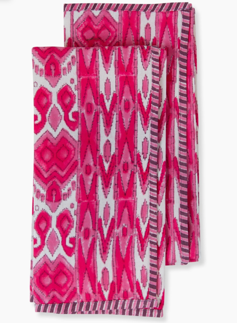 Chic and timeless, these pretty blockprint kitchen towels elevate the everyday and add a colorful charm to your kitchen or powder room.