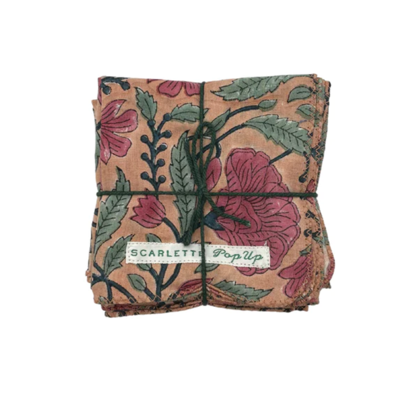 100% cotton printed by hand pressure from a hand engraved wood block. This technique is called blockprint.