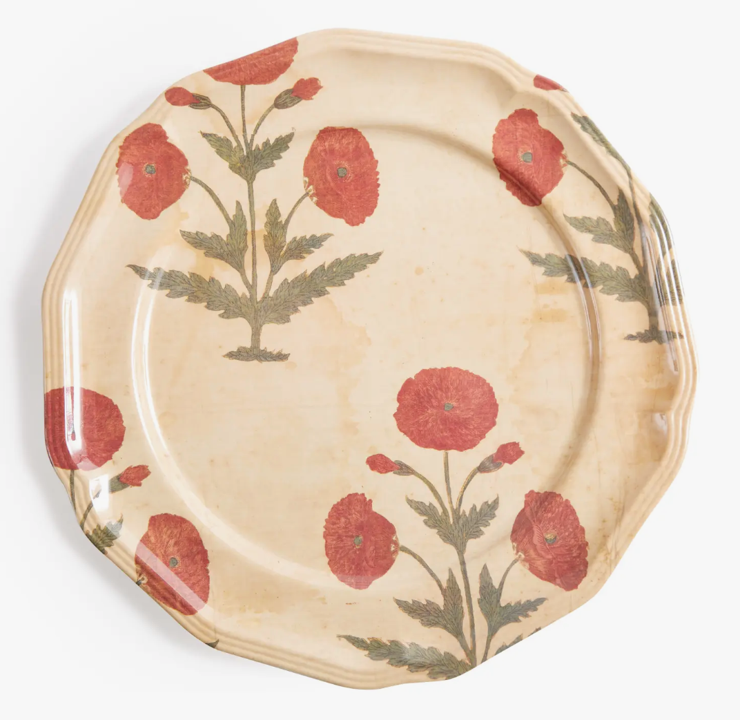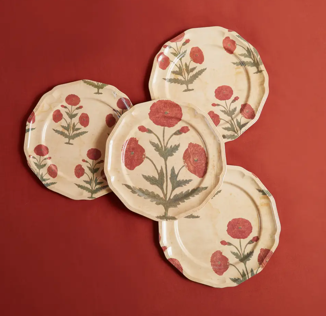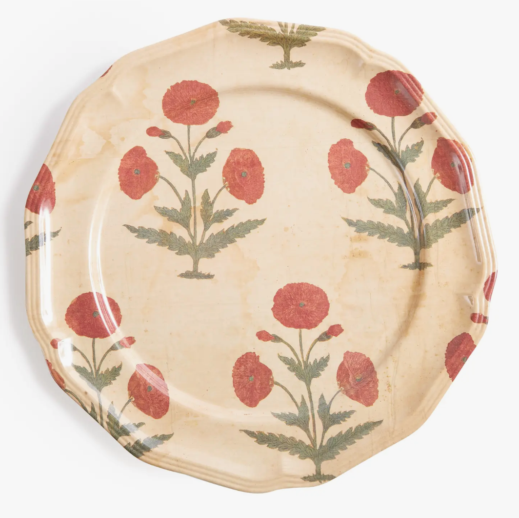 Inspired by vintage Indian textiles, these beautiful heavy weight melamine plates take their shape from antique pewter plates.