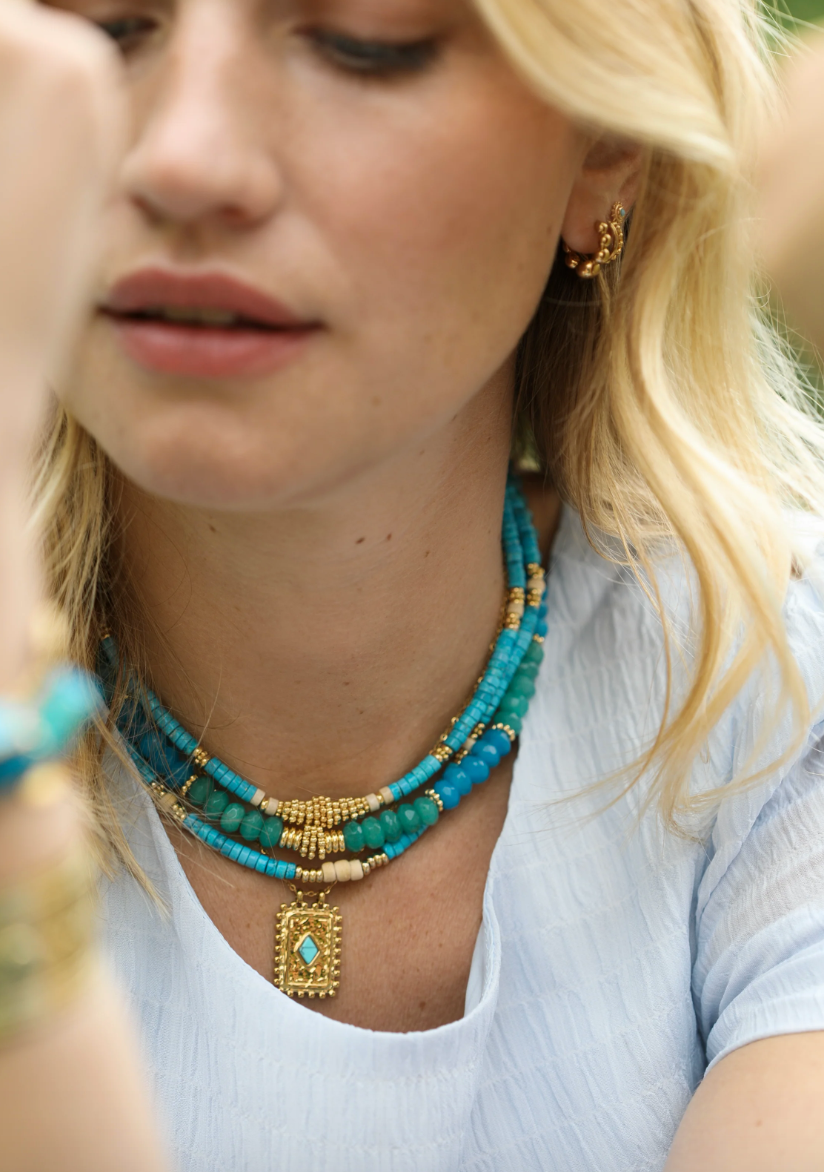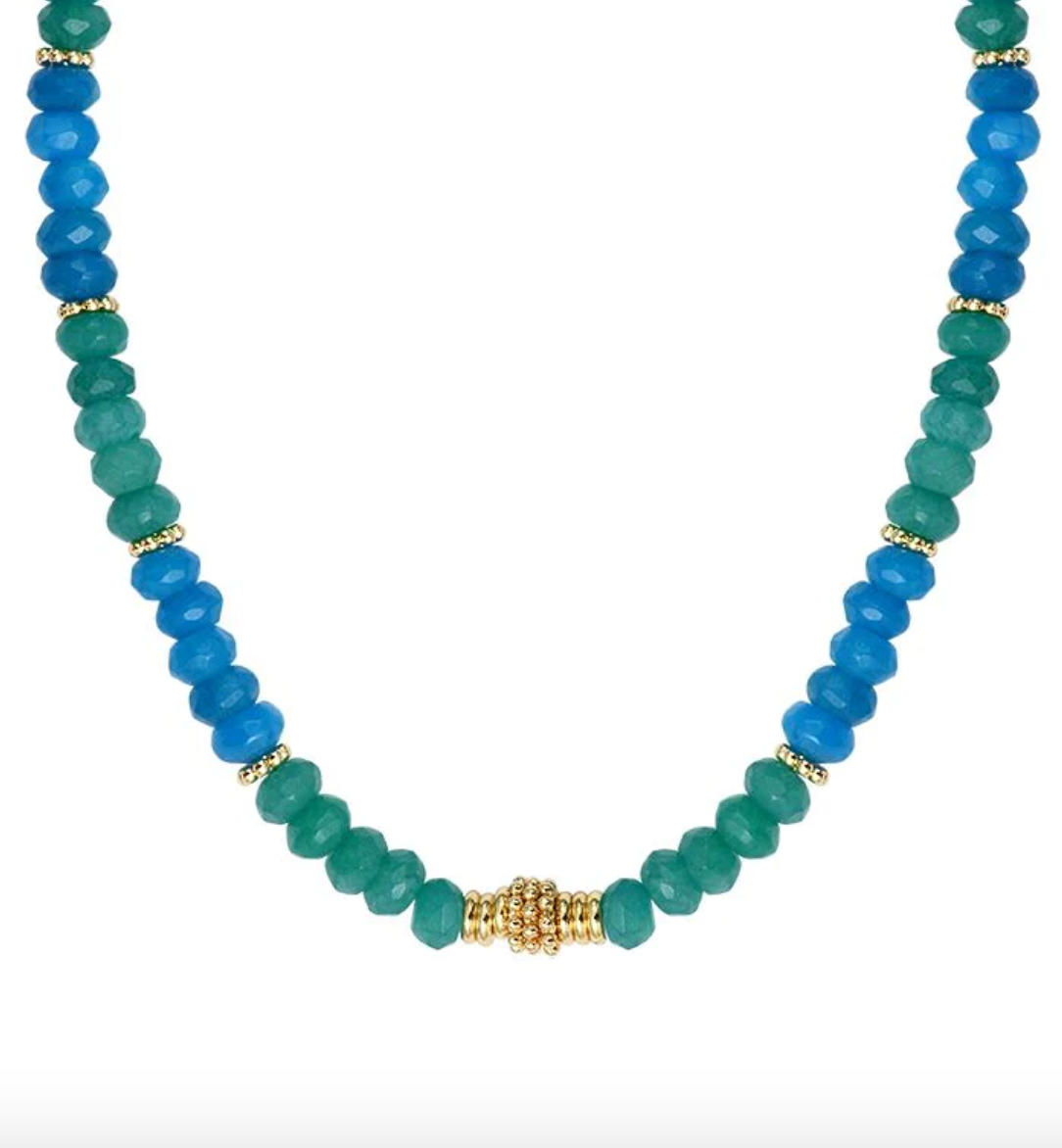 Enhance your style with our exquisite necklace, adorned with stunning blue and green gemstones. This piece is handcrafted with precision in the heart of Paris by Labelle Bijoux, making it truly unique.