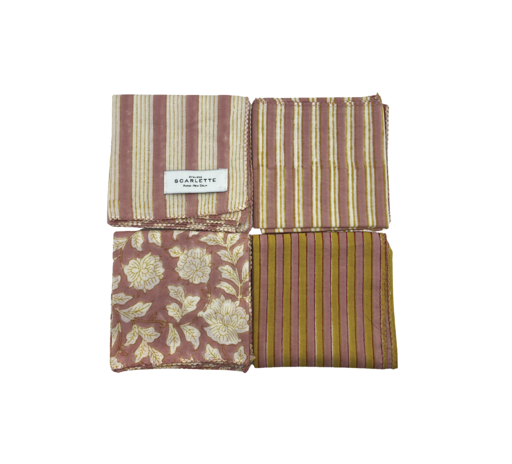 Set of 4 assorted napkins. 100% cotton hand printed in Rajasthan.