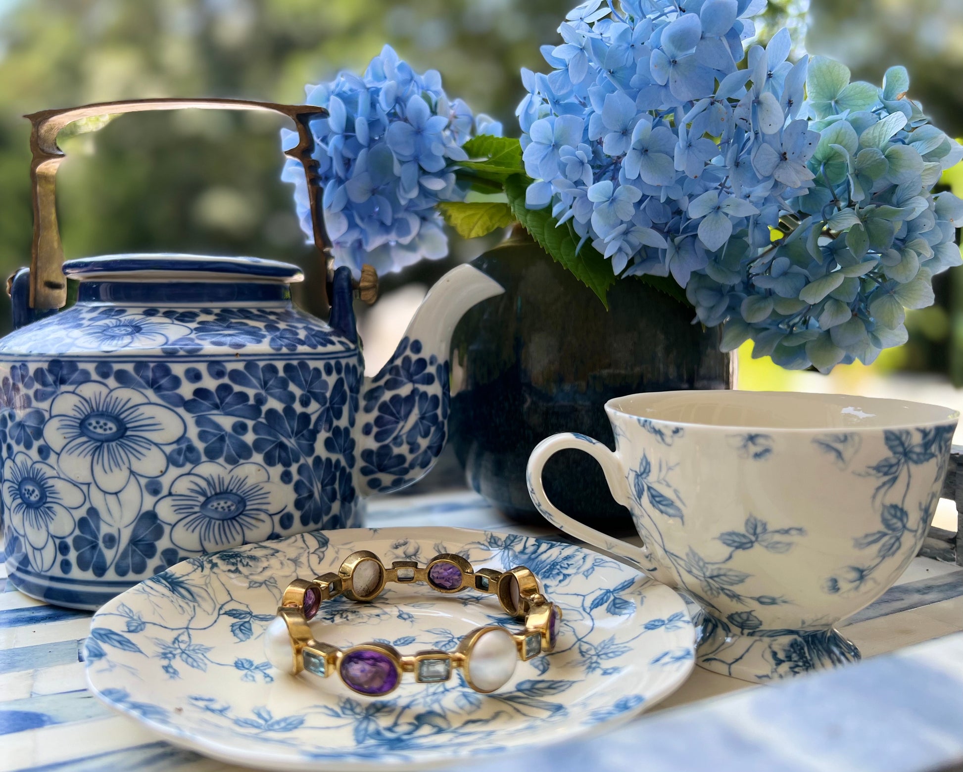 Round Bangle Pearls, Blue Topaz and Amethyst