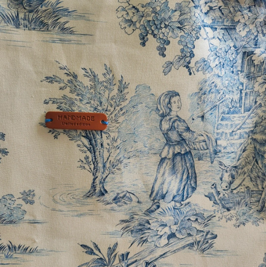 Indulge in timeless French charm with our chic and effortless tote bag—an epitome of elegance! Made from luxurious blue and cream toile de Jouy cotton fabric, each piece is delicately padded and lined for added durability and style.