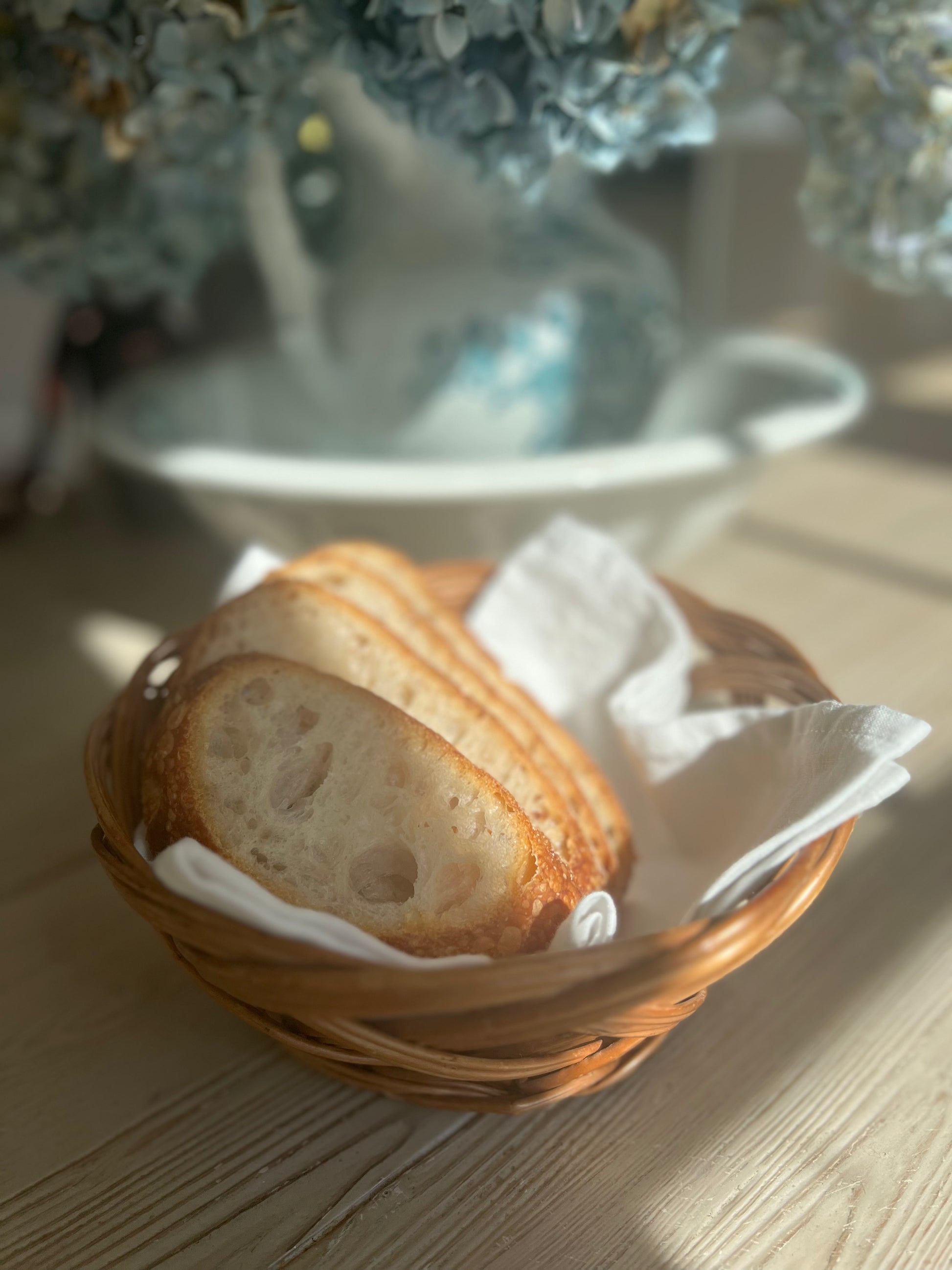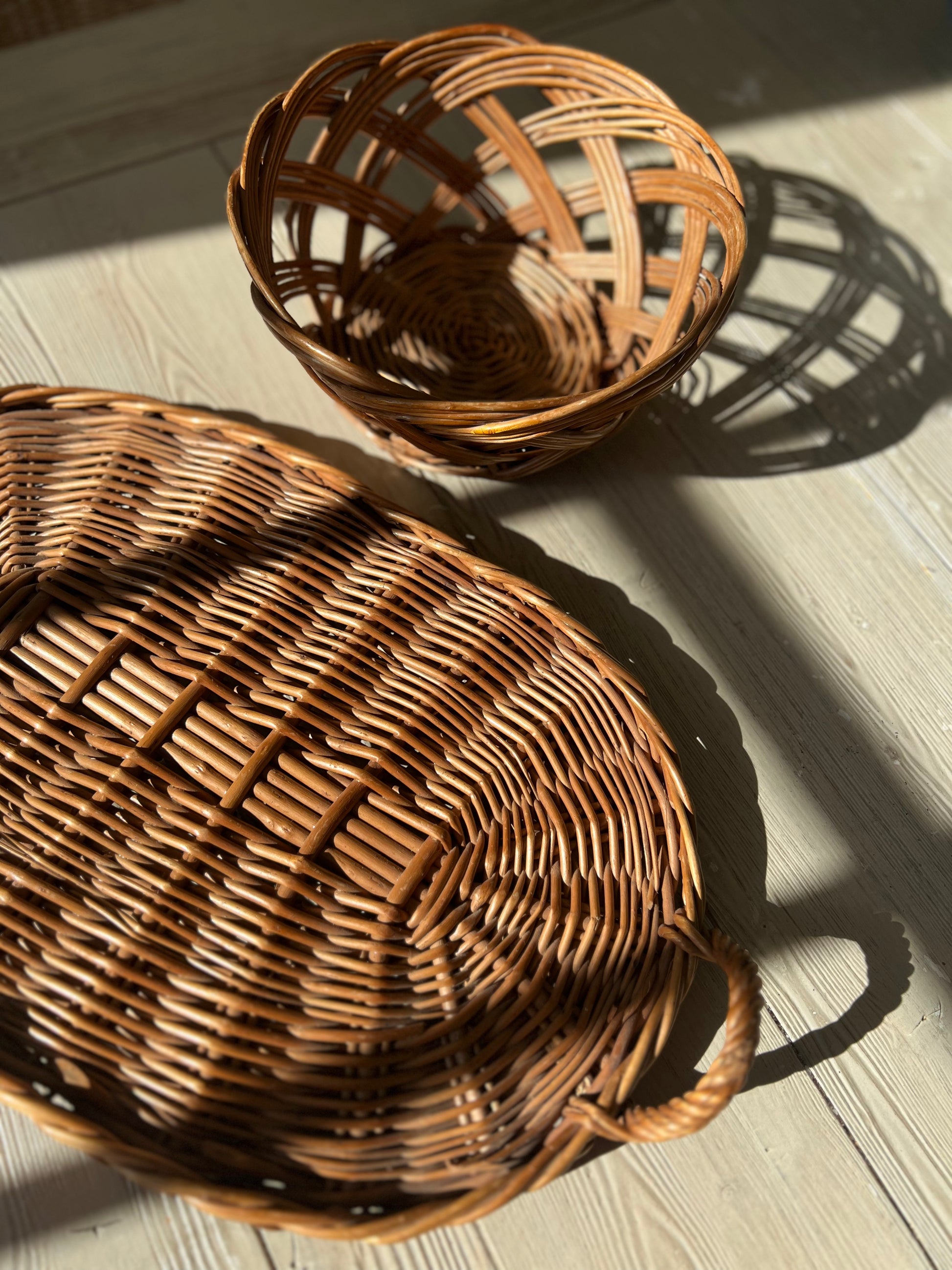 Add a touch of French country charm to your table with this vintage wicker bread basket and matching tray. Perfect for serving baguettes, pastries, or fruit, these timeless pieces bring rustic elegance to everyday dining. Handwoven and full of character, they make a lovely addition to any farmhouse or French-inspired kitchen.