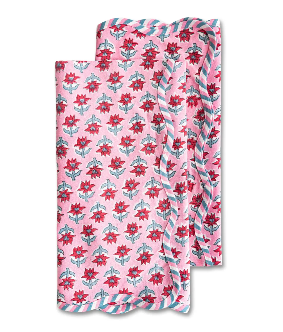Chic and timeless, these pretty blockprint tea towels elevate the everyday and add a colorful charm to your kitchen or powder room.