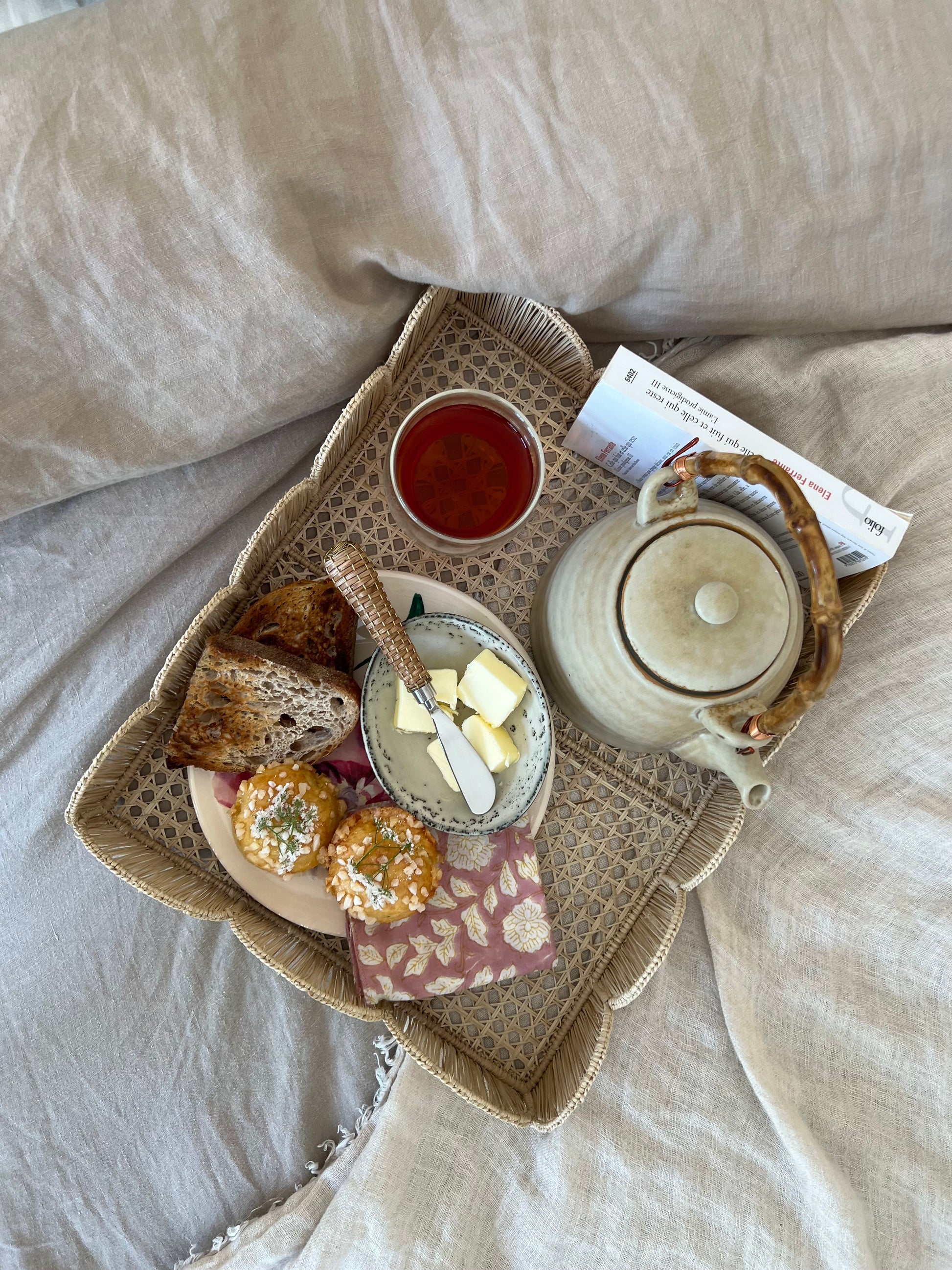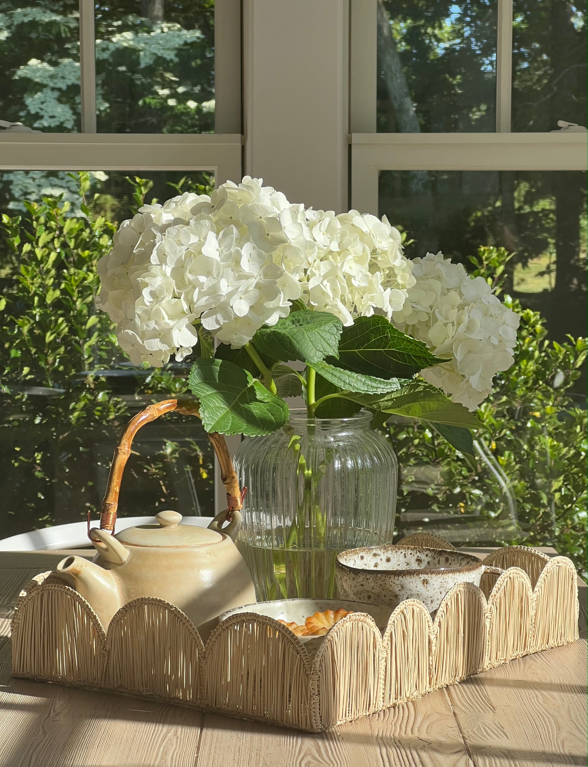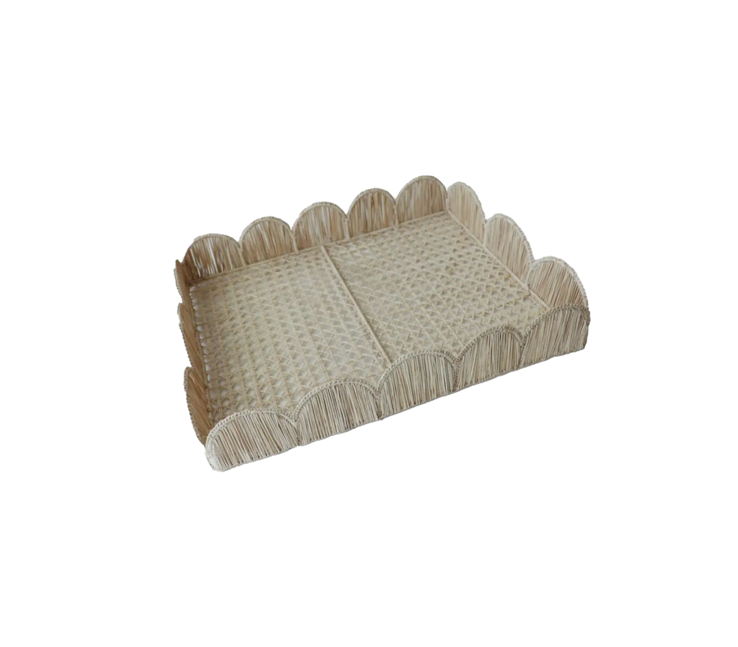This charming scalloped raffia tray is ideal as a drinks tray and will look wonderful anywhere: bar, kitchen, dining room and even bedroom.