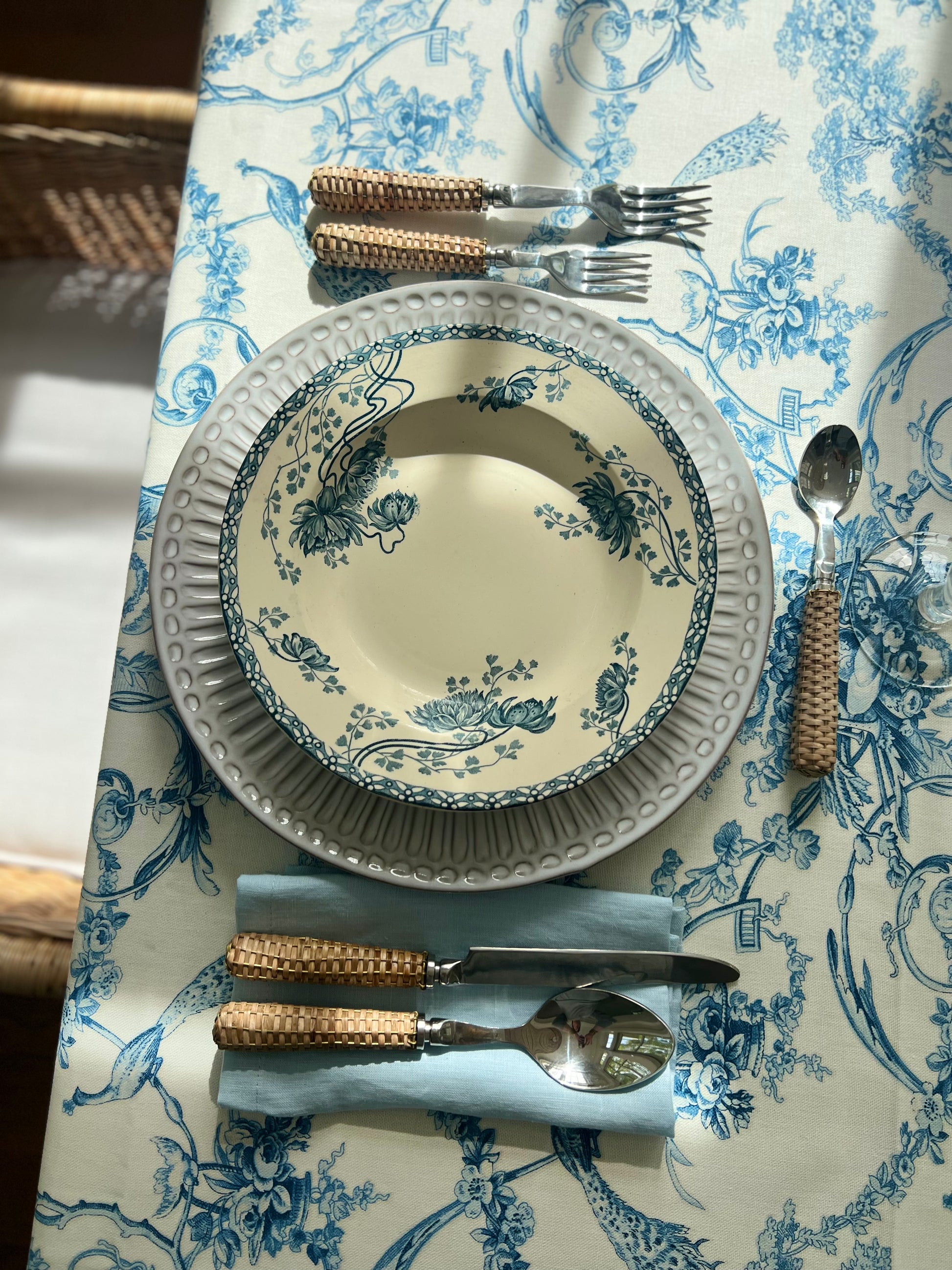 Ironstone tableware emerged in France around 1770, made from natural clay, sand, and minerals. Unlike porcelain, ironstone is not translucent and can have a rough or smooth surface. The term peaked around 1900 with manufacturers like Faïenceries du Moulin des Loups, Saint-Amand, Lunéville, and others, producing sets stamped with 'Terre de fer' for authenticity.