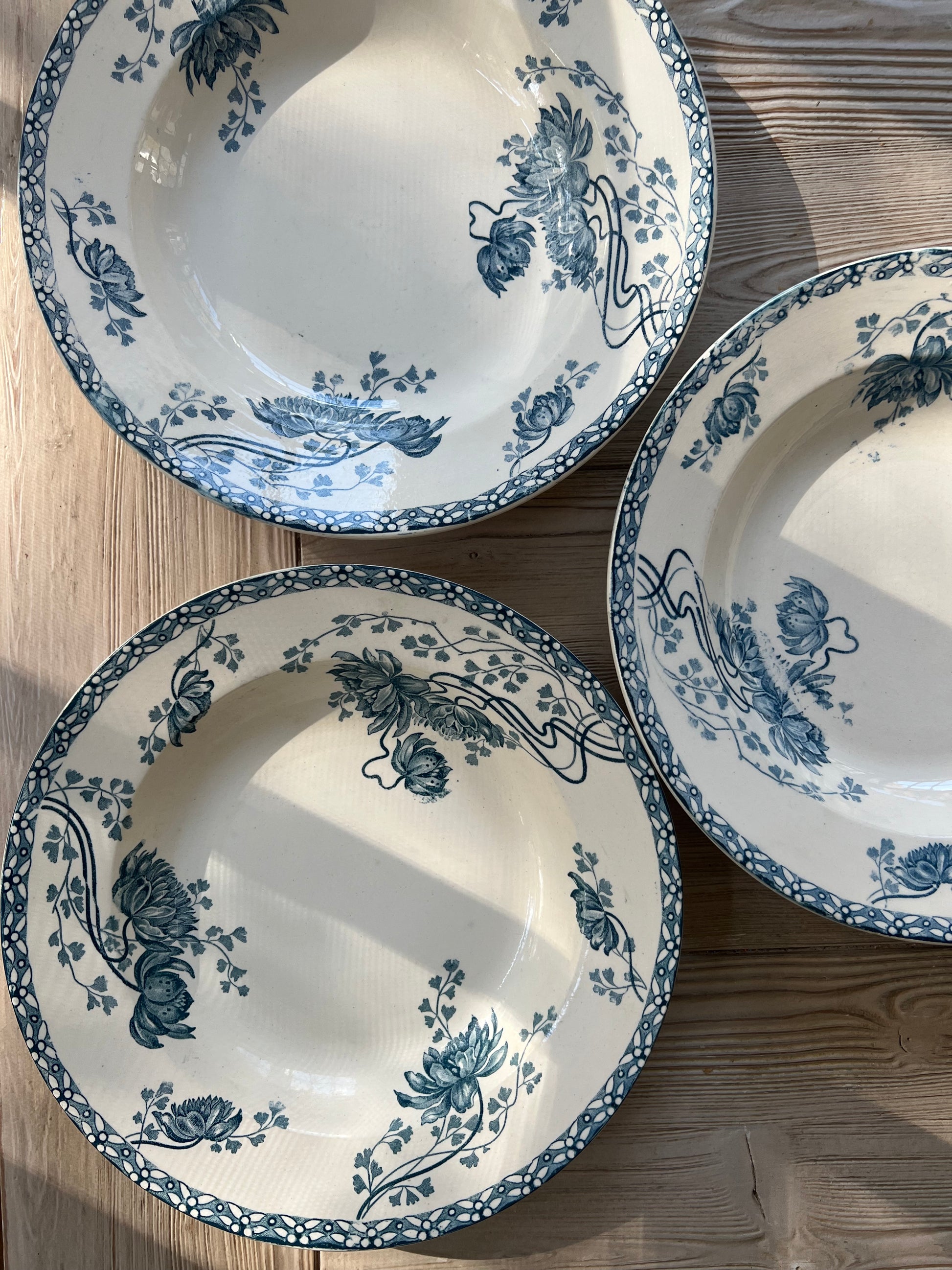 Set of 3 French Ironstone Soup Plates "Royat" by Sarreguemines