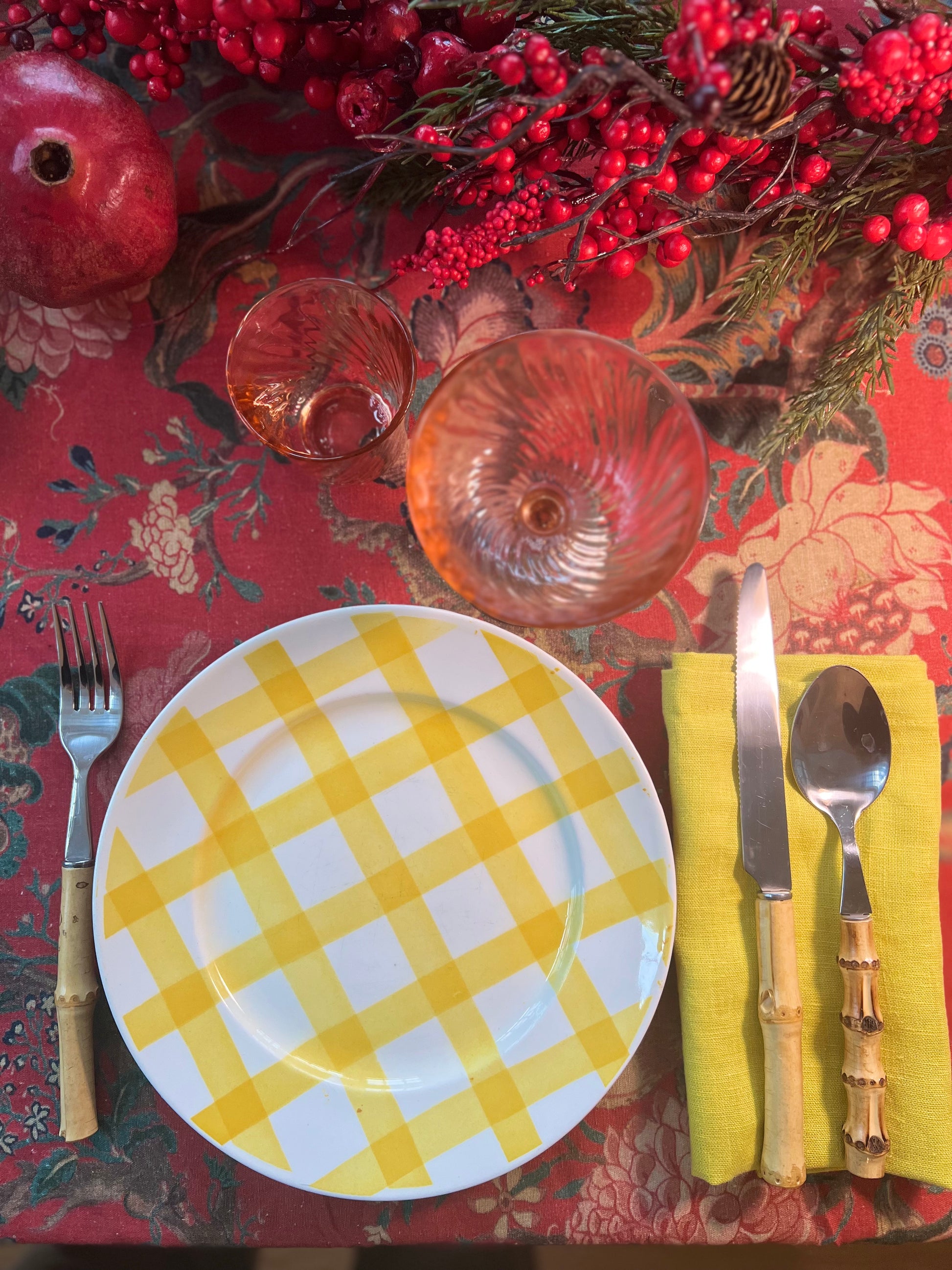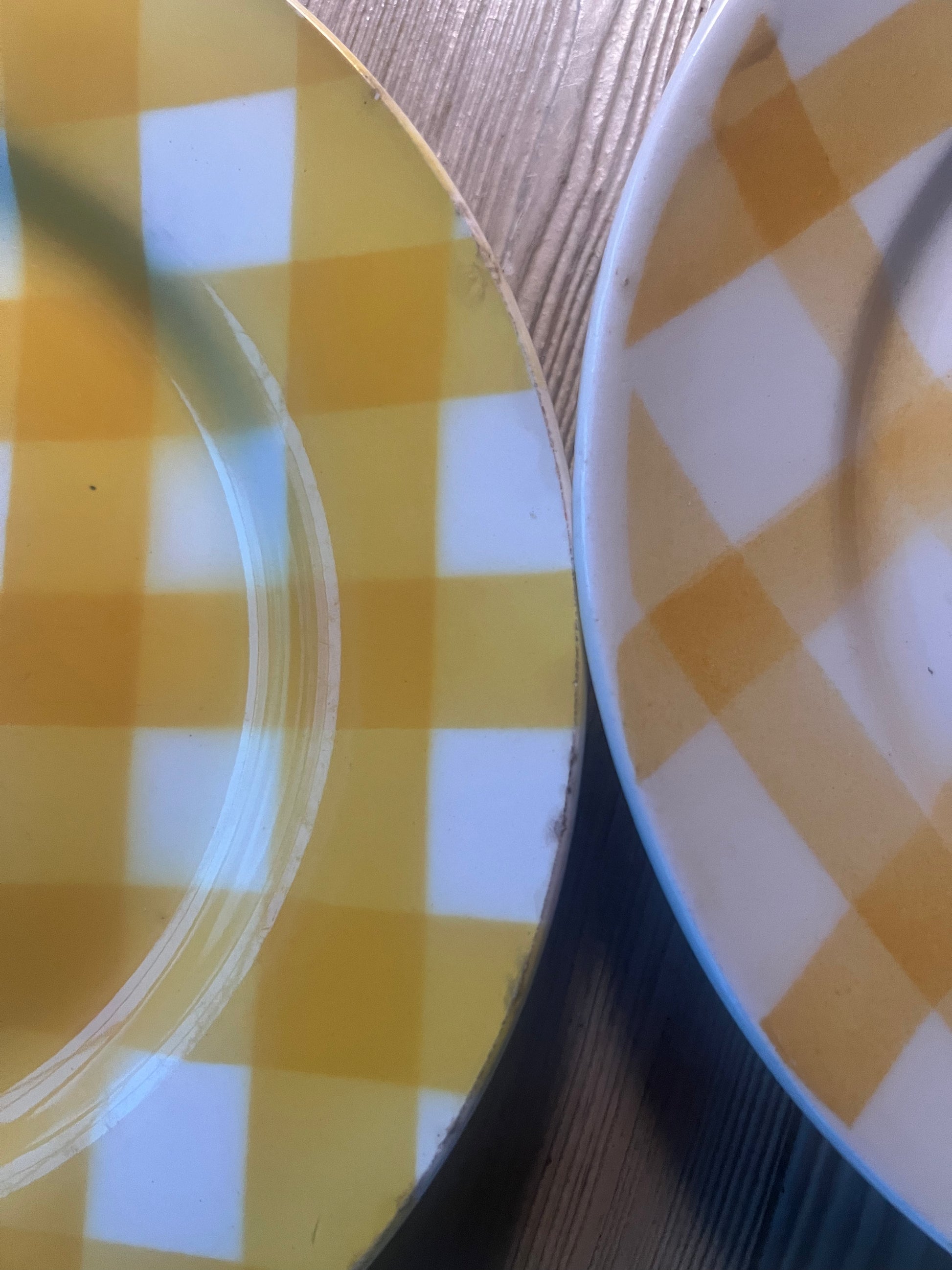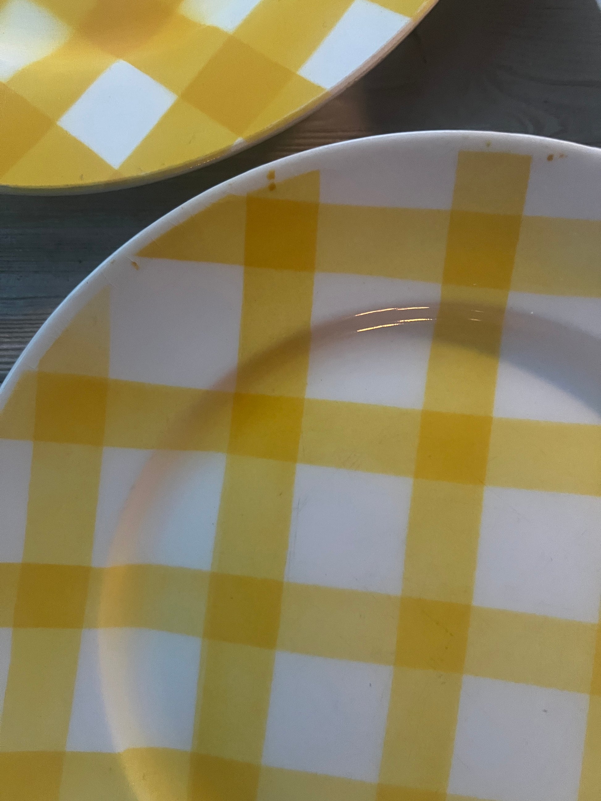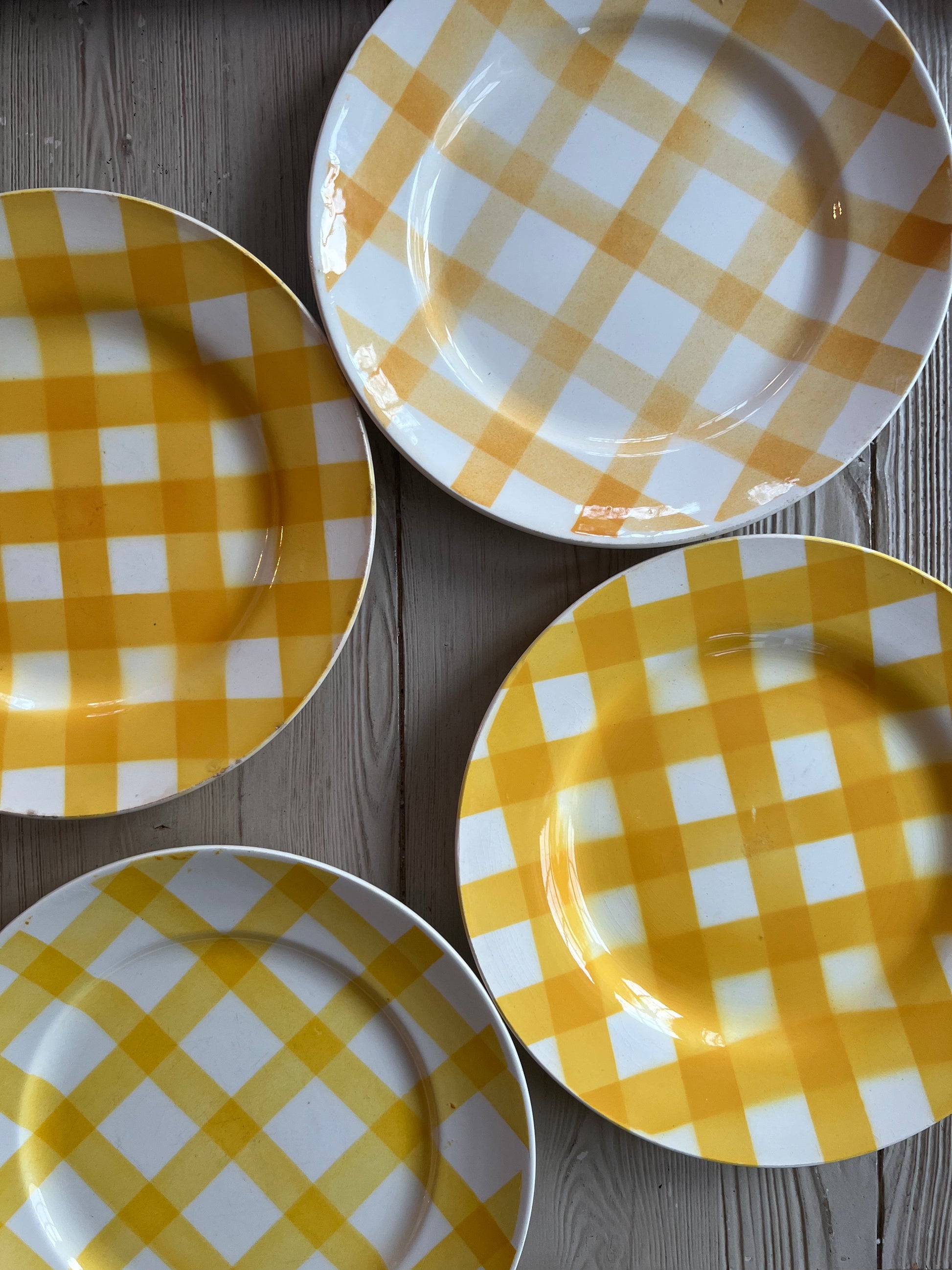 Add a touch of nostalgia to your table with this set of four vintage deep plates from Digoin, dating back to the 1950s. Each plate showcases a charming yellow tartan design, bringing warmth and character to your table setting.