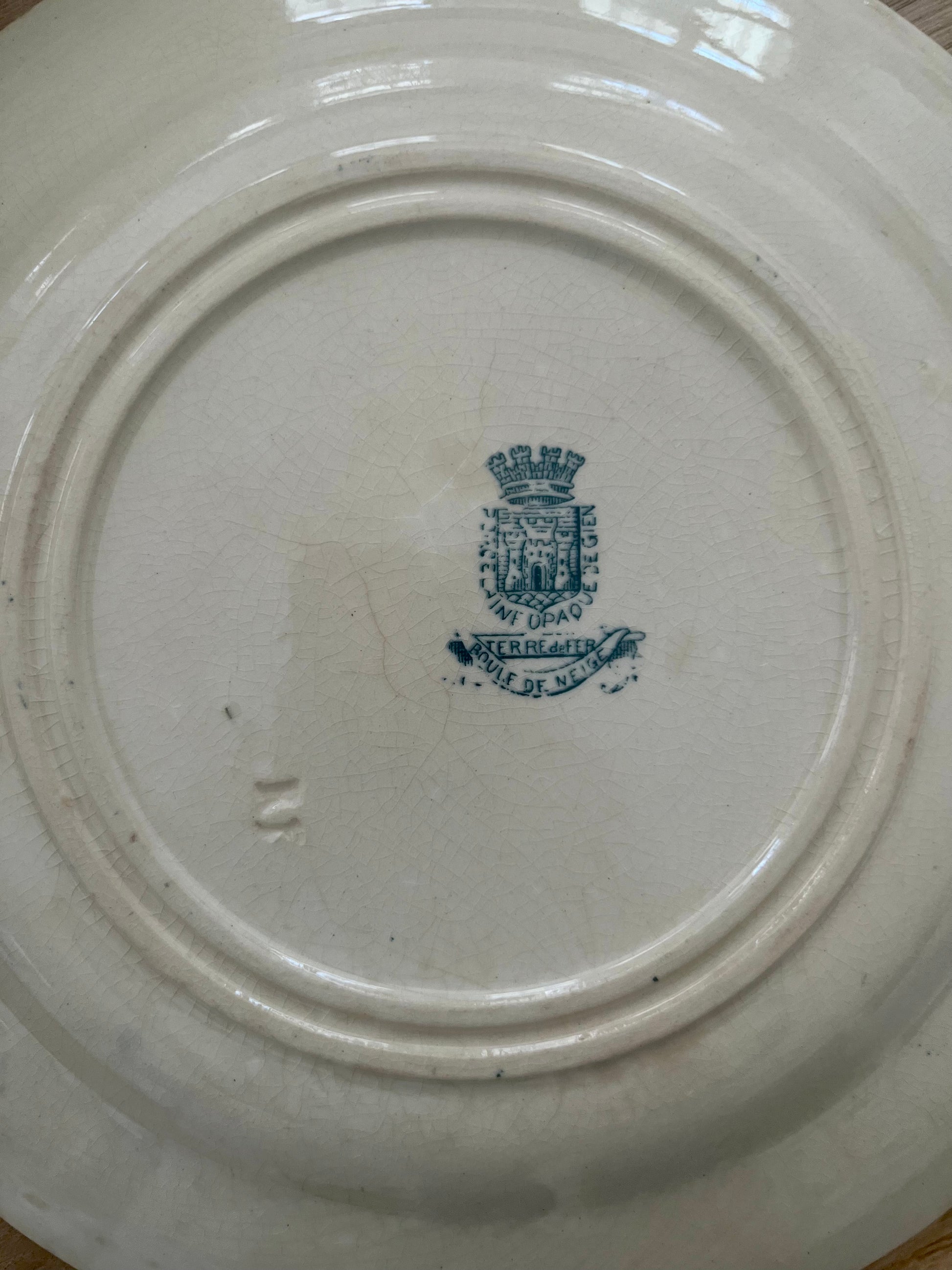 Ironstone tableware emerged in France around 1770, made from natural clay, sand, and minerals. Unlike porcelain, ironstone is not translucent and can have a rough or smooth surface. The term peaked around 1900 with manufacturers like Faïenceries du Moulin des Loups, Saint-Amand, Lunéville, and others, producing sets stamped with 'Terre de fer' for authenticity.