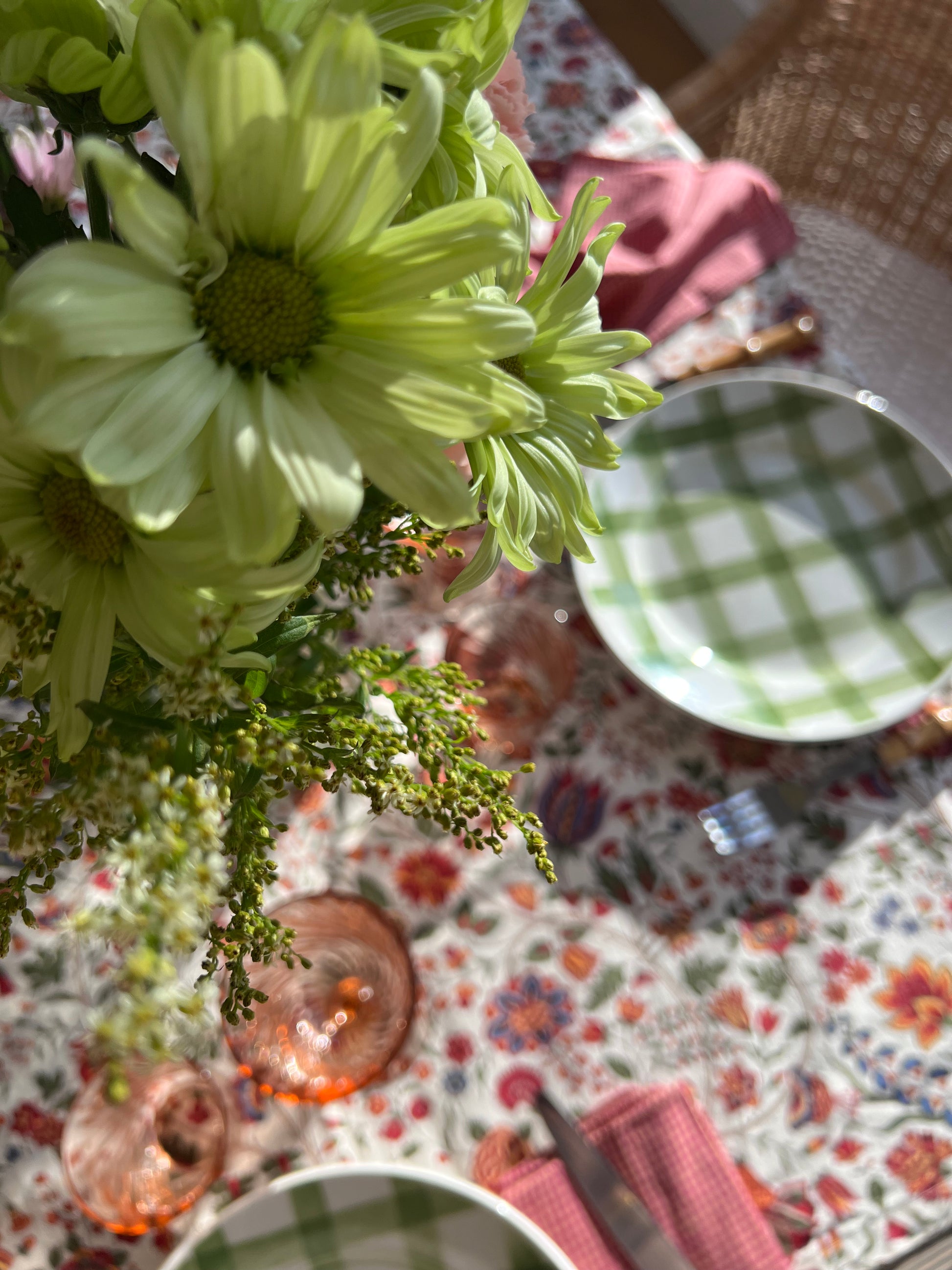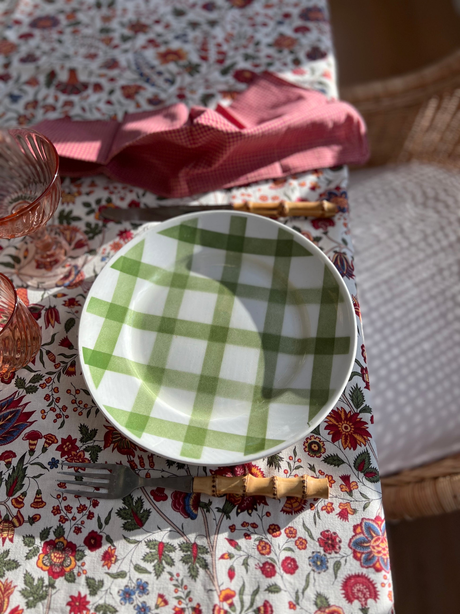 Set of 5 Vintage French Gingham Dinner Plates – Moulin des Loups Orchies “Nappe Verte"