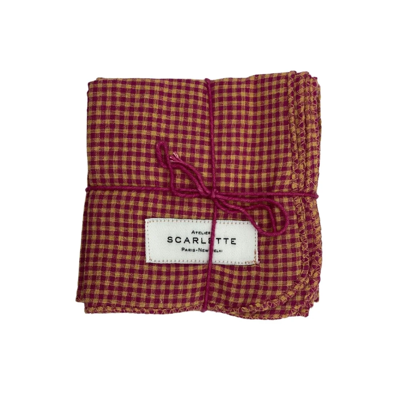 Set of 4 lovely checkered napkins made of very soft and light Khadi cotton spun and then woven by hand on wooden looms in the Bengal region.