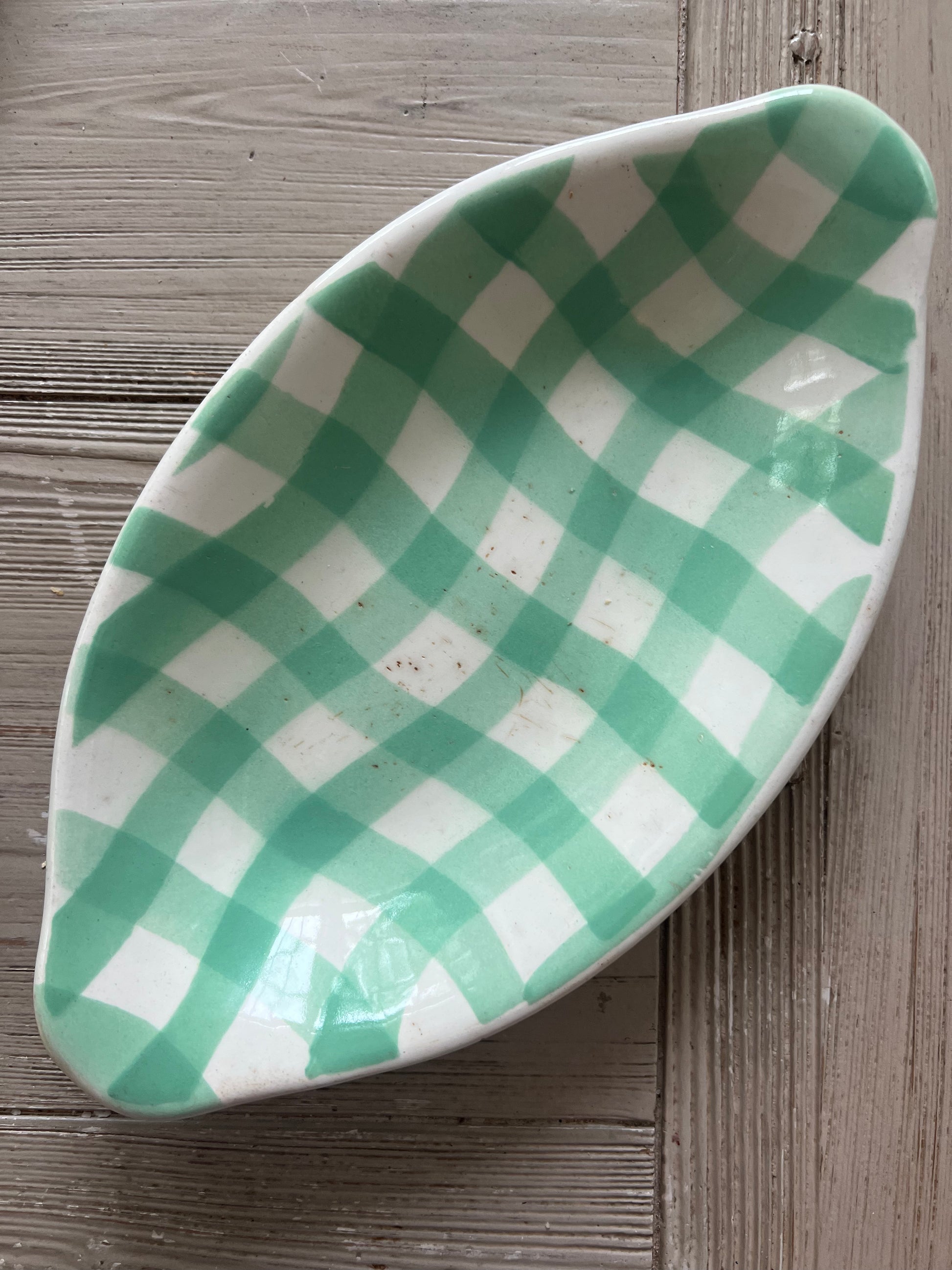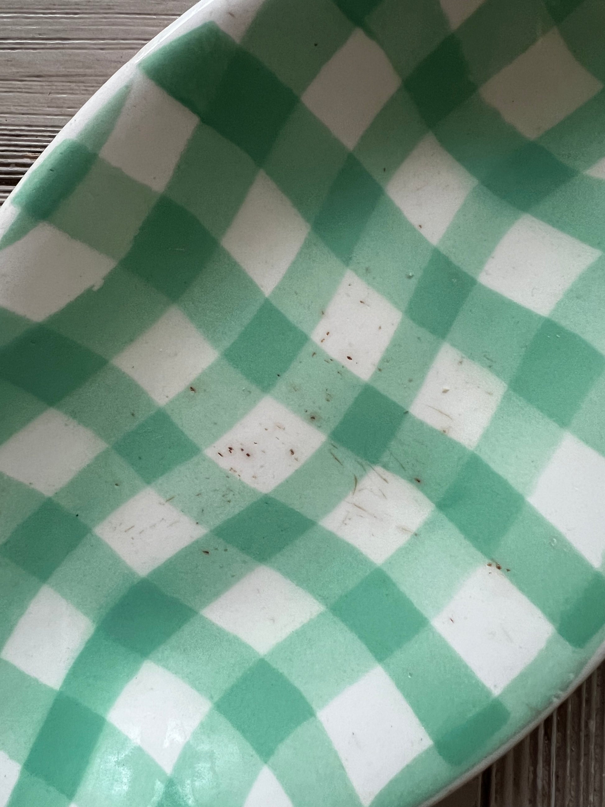 Small Vintage Gingham Serving Dish in Mint Greens by Salins