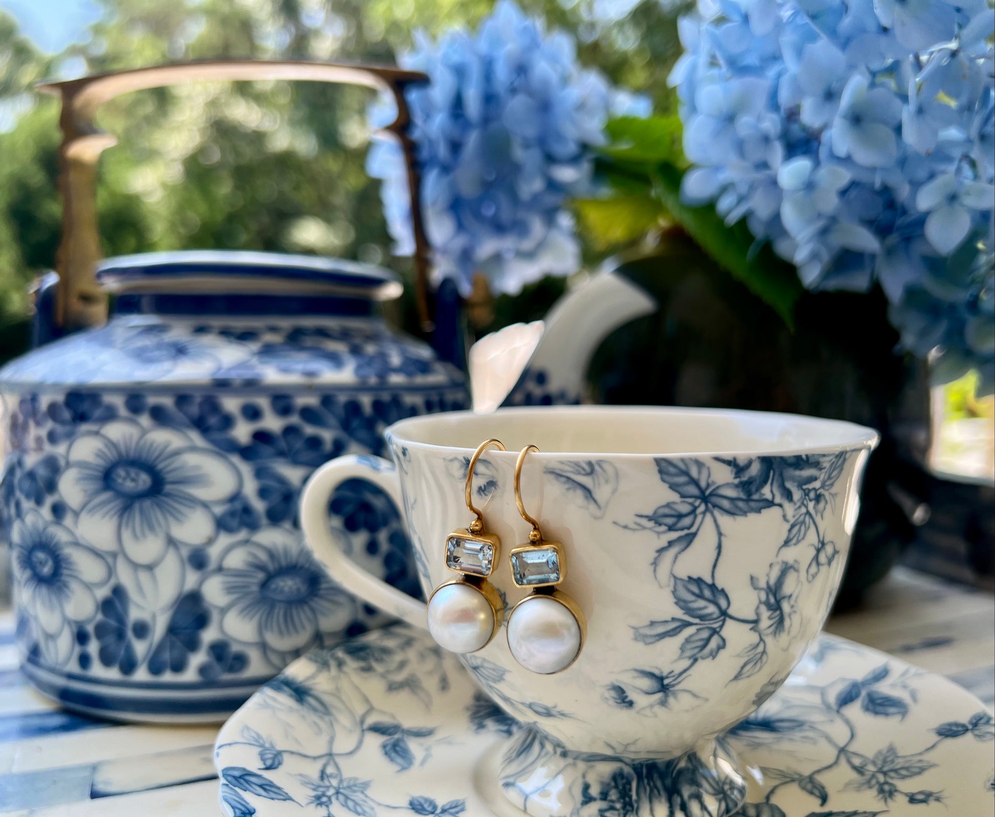 Materials : Topaze, Pearl in Silver Gold Plated.